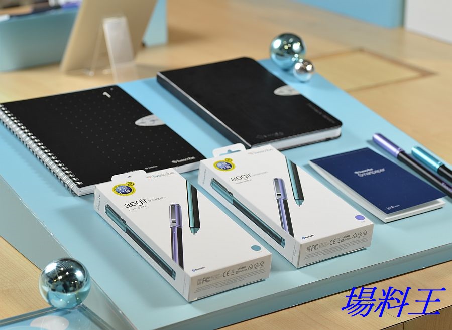 Aegir 智能筆備有藍綠色、紫色供選擇,建議零售價為 $998,並提供多款有線或無線的專用筆記簿,建議零售價為 $208 至 $258。