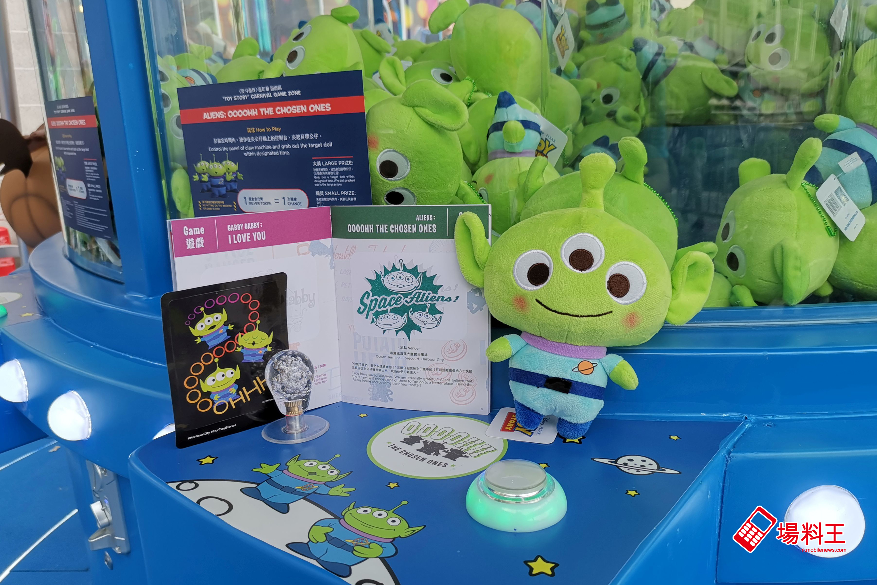 如果要玩巨型夾公仔機「Aliens: Oooohh the Chosen Ones」,則要繳付 1 個遊戲金幣才可玩,中獎的話有機會夾走小型三眼仔公仔。另外,大家於每個攤位遊戲中,即使未能「完成任務」,亦可收到貼紙作安慰獎。