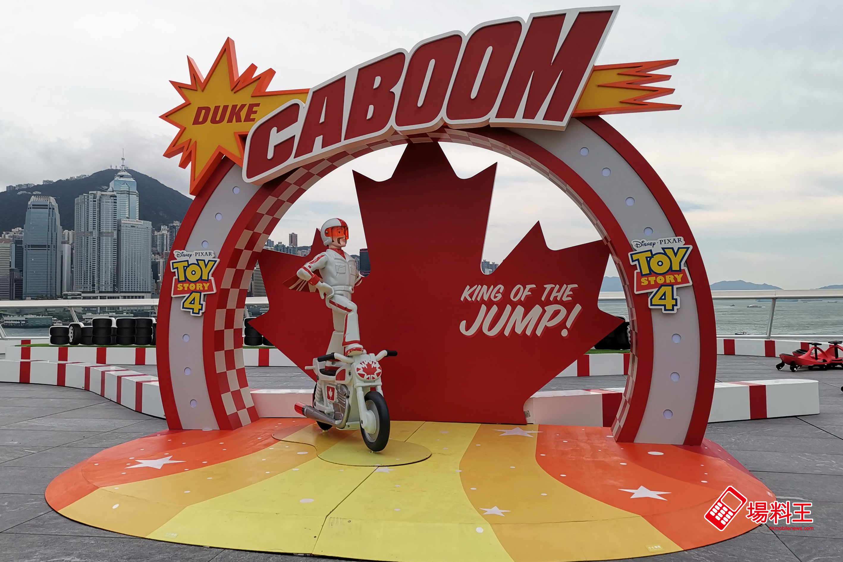 在熱氣球售票處旁走進去,可見到牧羊女寶貝外,舉頭還可見到《反斗奇兵 4 》新角色之一、號稱 70 年代最勁加拿大特技人玩具的勁爆公爵在過山車的路軌上表演。