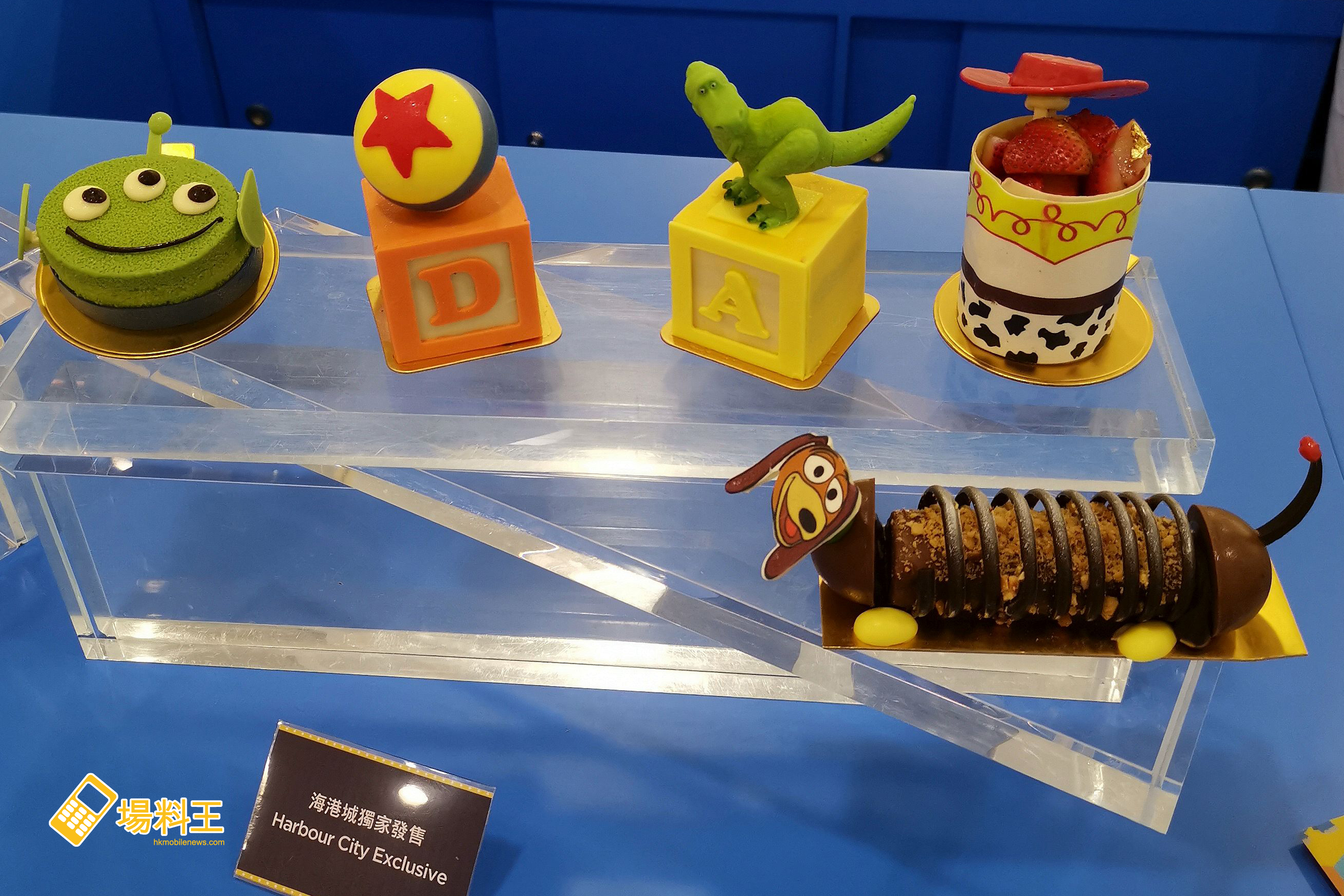 香港迪士尼樂園更為海港城帶來「反斗夏日甜趣工房」,出售共 11 款以胡迪、巴斯光年、勞蘇等角色為主題的甜點,售價為 $45 至 $70,其中以下 5 款以三眼仔、比薩星球、抱抱龍、翠絲及彈弓狗為主題的甜點,更是在海港城獨家發售。
