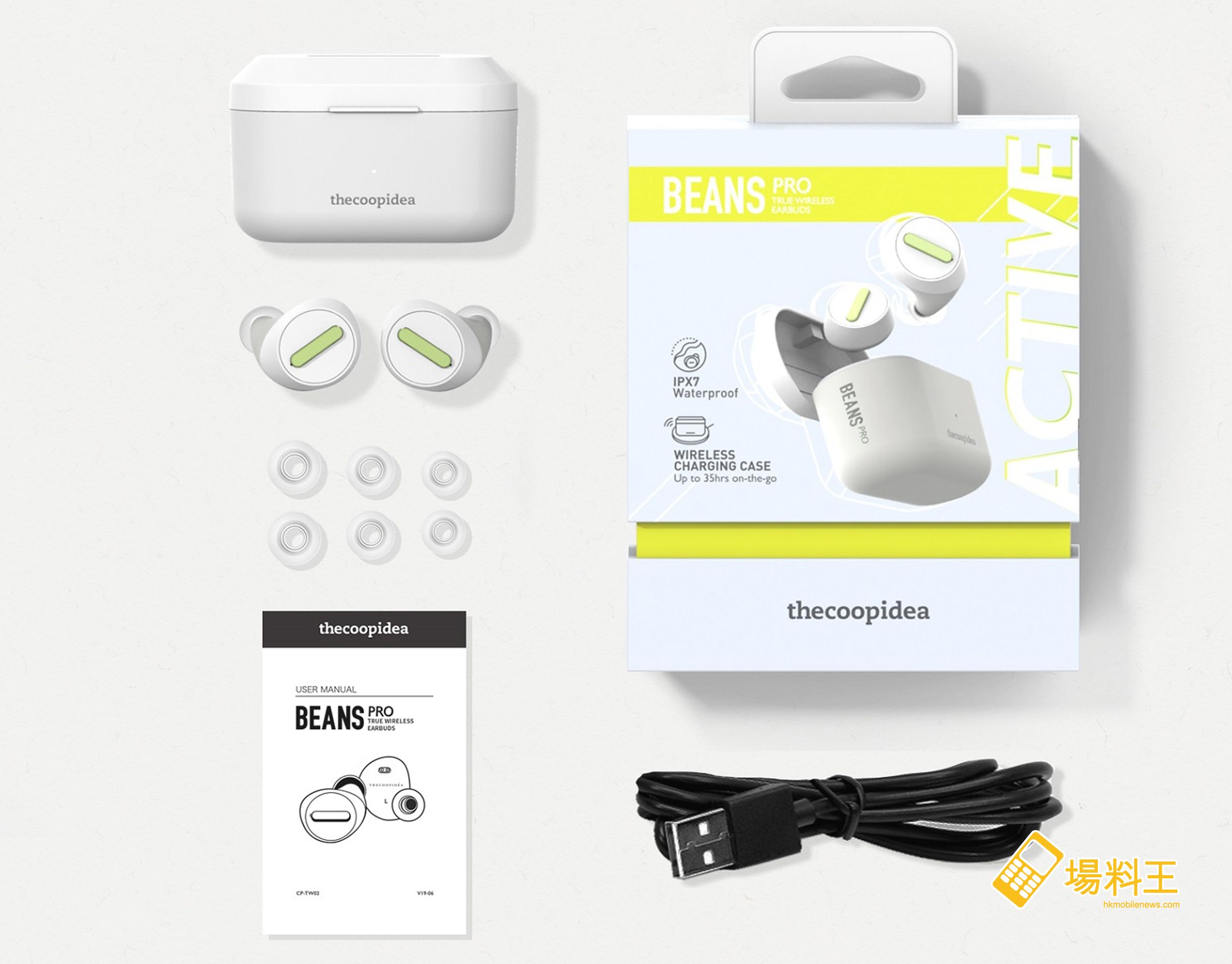 本地數碼產品潮牌 thecoopidea 剛於其招牌 BEANS 系列產品中加推了新型號的 BEANS PRO ACTIVE。此耳機使用緊貼耳窩的人體工學設計、具 IPX 防水防汗認證,並提升了不少功能,且將潮鞋及 Hip-Hop 文化注入高端數碼產品的藍牙耳機當中,提供黑、粉紅、夜藍、煙幕紫及淬煉白五種顏色,創造獨特的運動 Style,售價 $899。