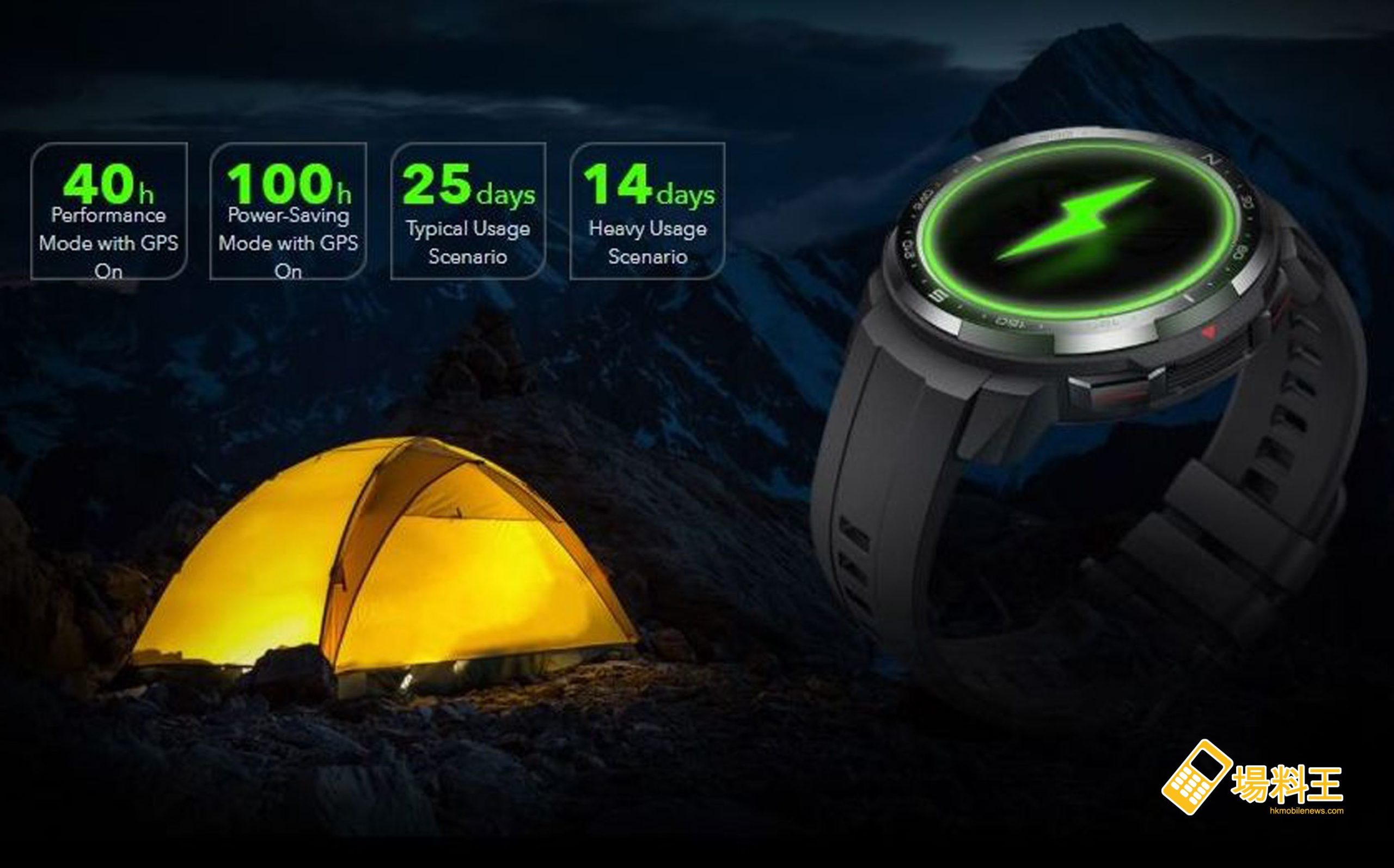 對於一款戶外運動智能手錶而言,電池續航力顯得十分重要,特別是對喜愛野外運動的用家來說。Watch GS Pro 採用的是高集成異構晶片設計的華為Kirin A1晶片,能夠多核高效運作,具備超低功耗運算以及強勁性能,保證裝置運行速度的同時,配合其 790mAh 容量大電池,可實現長達 25 天的續航能力。