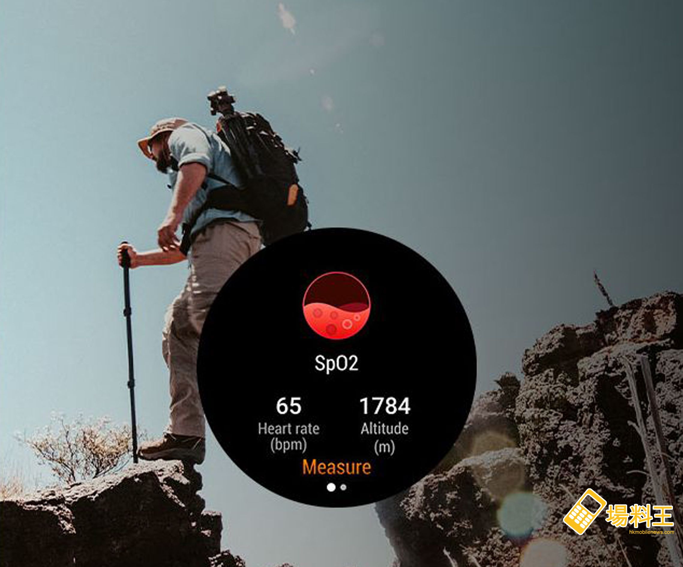 最後 GS Pro 還能夠測量血氧功能。在我們日常生活中,由於血氧含量不足引起的情況很常見,如手腳冰冷、欠缺精神等,而手錶就能夠通過即時的血氧飽和度測量資料來提醒使用者注意身體狀況。