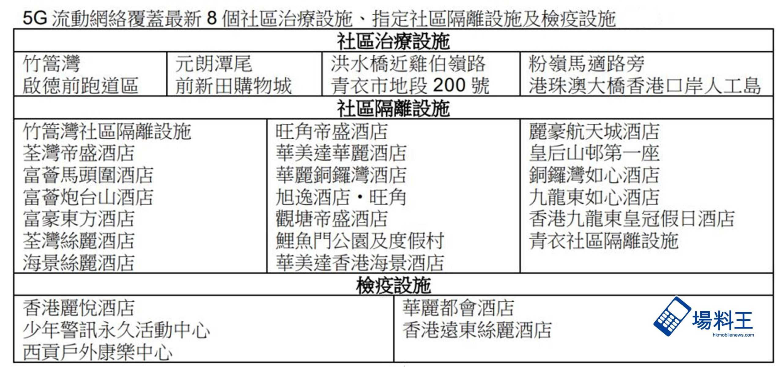 此安排亦會適用於政府即將興建 8 個社區治療設施、社區隔離設施及檢疫設施 (上圖)。客戶只需提供檢疫中心或酒店房間門牌號碼相片及政府發出相關文件,透過 WhatsApp(csl:66562123 或 1O1O:65371010)聯絡香港電訊,便有專人送上免費本地流動數據及相關增值服務。