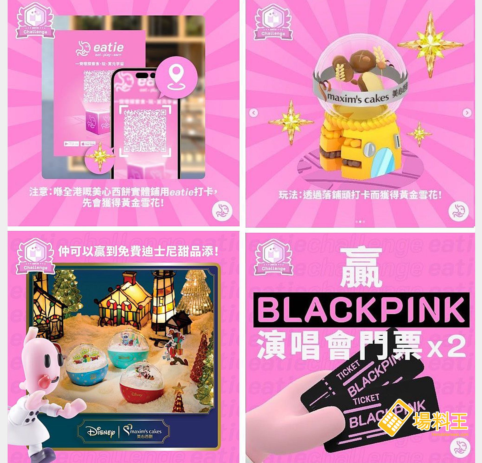 有關「eatie」的 Play-to-Earn 部分,程式剛推出了首次的遊戲任務,就是大家可由即日起到 12 月 29 日上午 11:59 前,丟透過「eatie」app 到任何一間美心西餅分店打卡,即可獲得「黃金雪花」道具,用以參加抽獎,當中的大獎包括「Blackpink 演唱會門票 2 張」、美心西餅迪士尼甜品等。