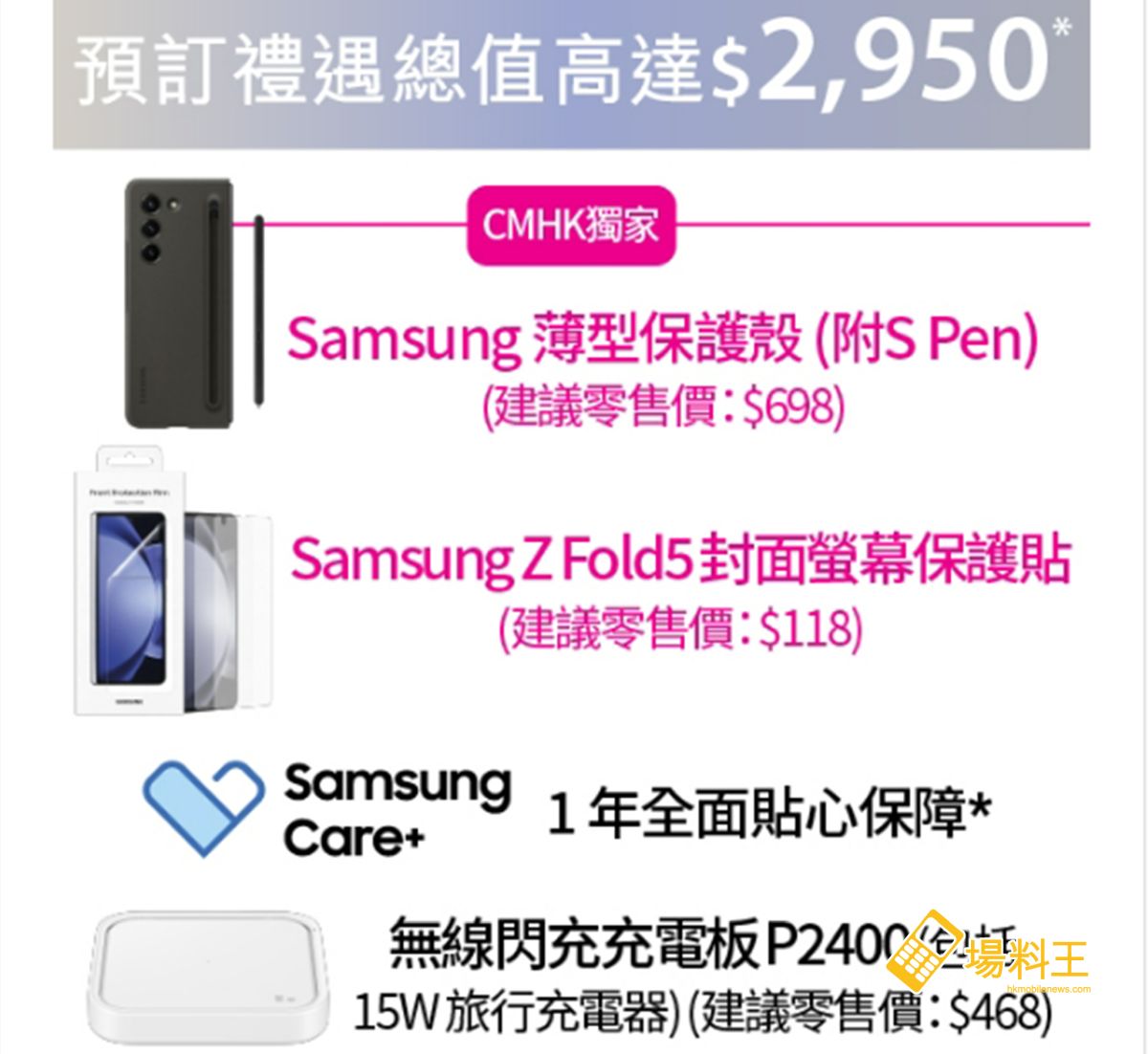CMHK 獨家禮品 Samsung 薄型保護殼附 S Pen(建議零售價 $698)及 Samsung Z Fold5 封面螢幕保護貼(建議零售價 $118)