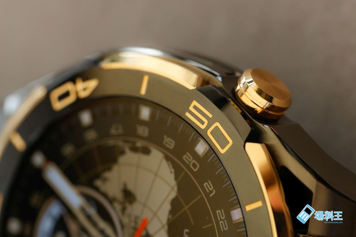 金條與非金段位置依照黃金分割比例排列,將黑色的沉穩與金光璀璨集於一身,並巧妙地將天線藏於錶圈之下。錶圈上的 18K 金段擁有 75% 含金量,每段都需要經過 6 道鍛造加 4 道回火工藝,每一次鍛造都需要使用不同形狀的模芯。經過反覆鍛造的 18K 金呈現鏡面級高光,帶來珠寶般精緻質感,展現頂級工藝美學。