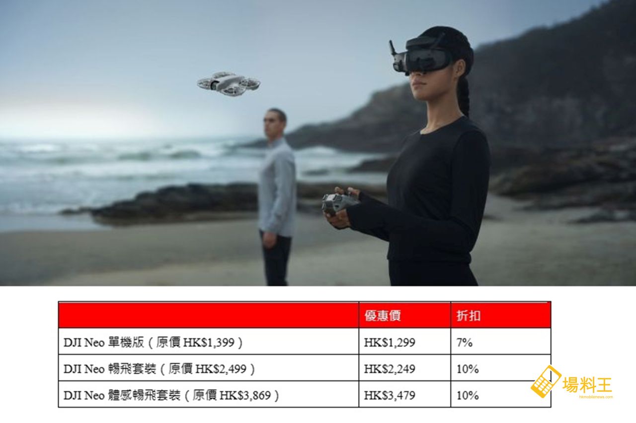 DJI Neo 外型小巧,重量只有 135 克,採新全包式保護設計,方便攜帶。DJI Neo 不但支援傳統遙控操作,又可搭配 FPV 眼鏡進行第一身體驗;更換上全包式保護設計,支援掌上起飛或降落,操作性、玩味性大大增加。DJI Neo 10% 折扣優惠期由即日起至 4 月 21 日,消費者只要前往 DJI 專門店及指定零售商戶即可以優惠價購買 DJI Neo。