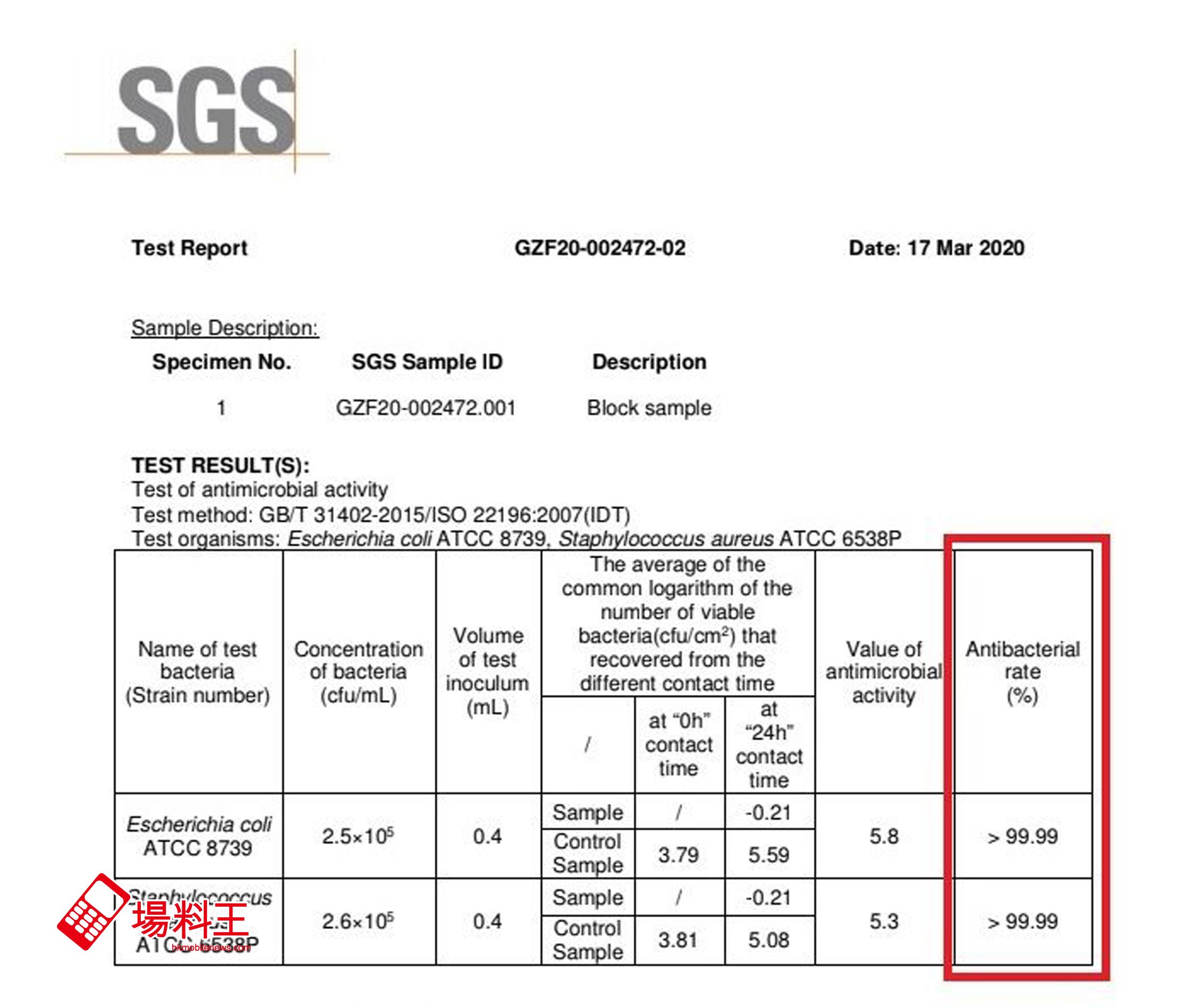 SGS 國際認證 99.99% 抗菌率認證