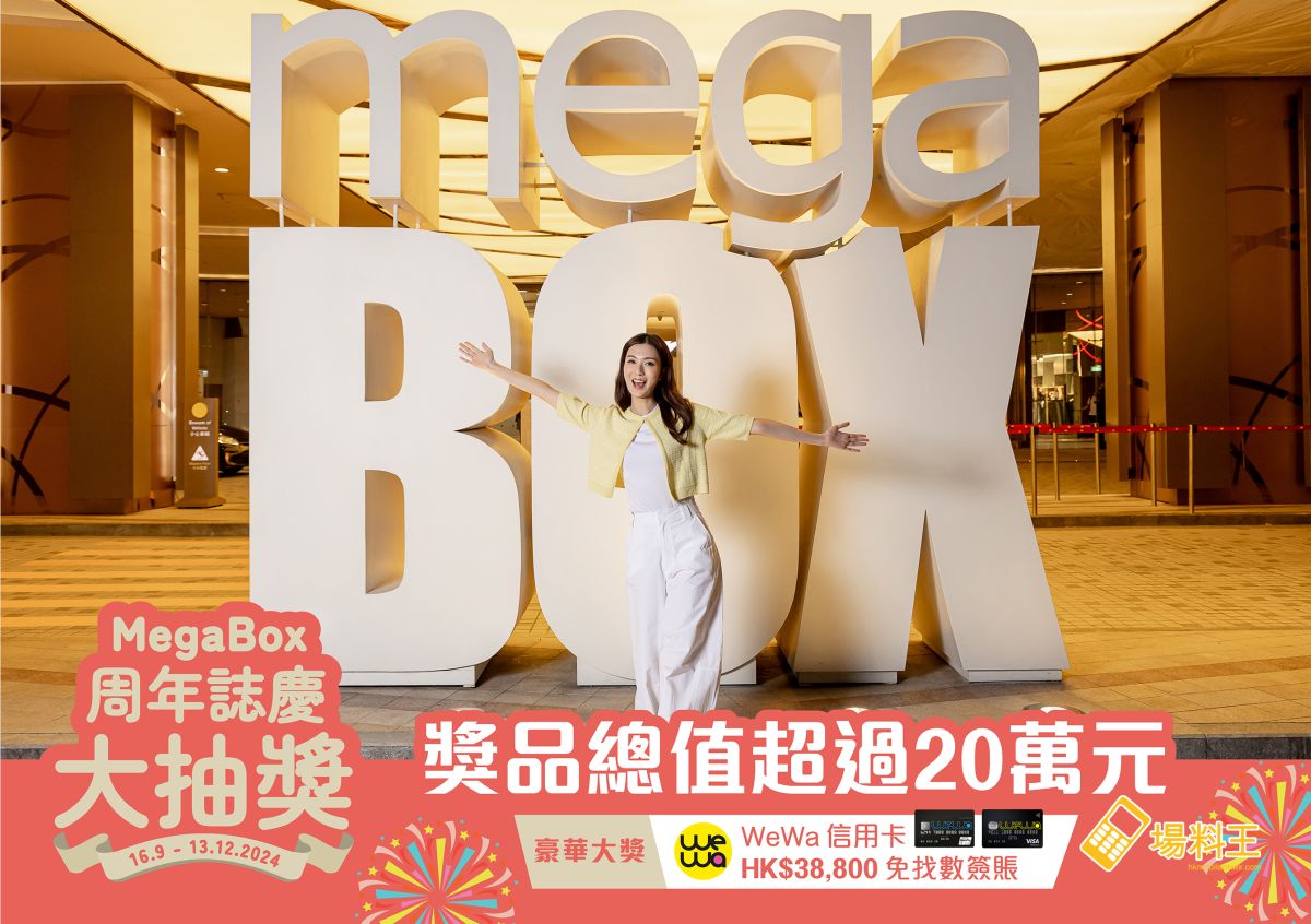 MegaBox 年度盛事「周年感謝祭暨寵物嘉年華」於 9 月 27 日至 11 月 7 日舉行。今年活動獲得各大商戶的支持,推出近300個獨家優惠,涵蓋 6 個階段,過萬件產品低至 1 折,總值高達 500 萬元;期間更會舉辦 MegaBox 周年大抽獎,獎品總值超過 20 萬元,並有限量版周年福袋換領活動。此外,顧客可參與每周最高消費賞,連續 6 周梳化電器賞不停,送出近 20 萬元家品梳化電器;當中 10 月 25 日至 11 月 7 日則為「周年感謝祭暨寵物嘉年華」。顧客食買玩後,MegaBox 更每人狂賞美食現金券,回贈高達 100%,人人有獎,讓顧客盡情消費盡享著數!