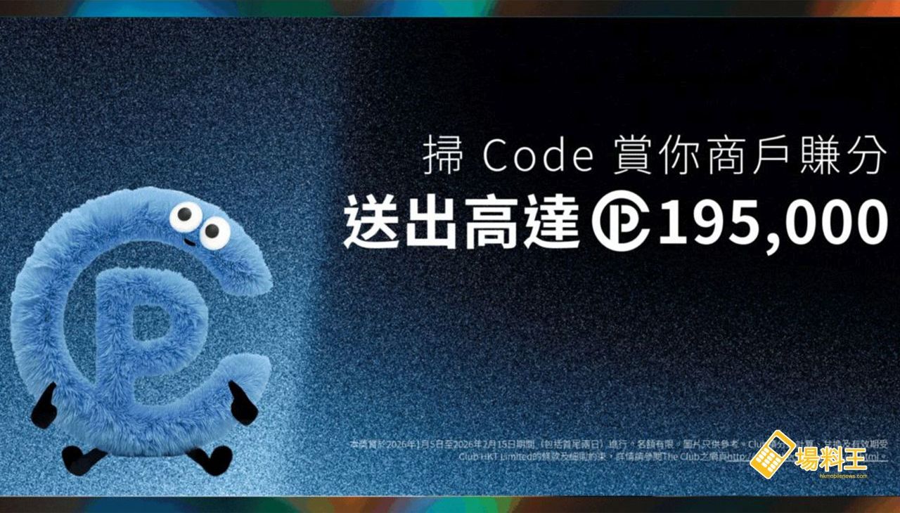 • 掃 code 賞商戶賺分:由即日起至 2026 年 2 月 15 日,會員於指定合作夥伴的實體店舖拍攝/掃瞄活動專屬二維碼或進入指定應用程式,並完成指定步驟,即有機會賺取 20 Club 積分(活動送出 Club 積分總額高達 195,000分)。