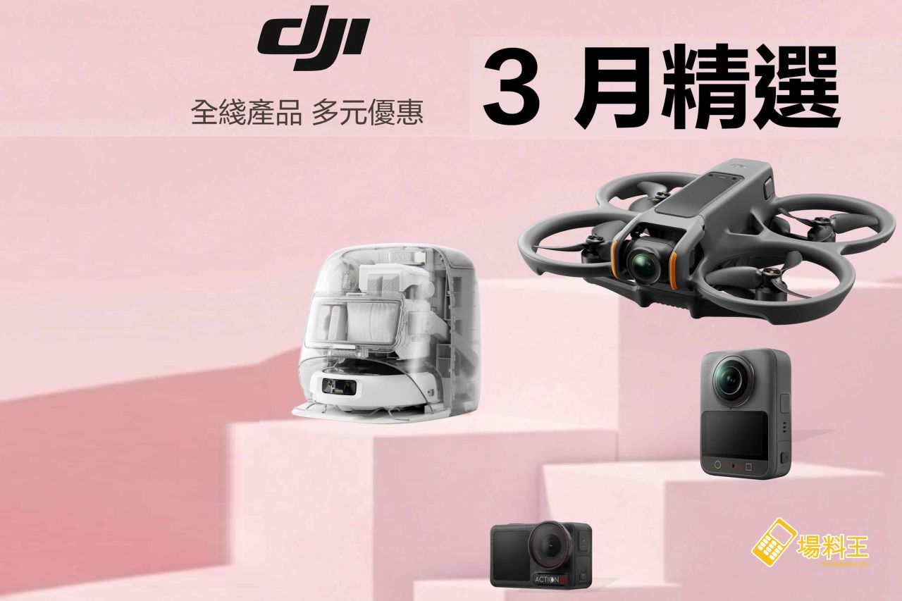 DJI 於 3 月繼續推出多款優惠,由即日起至 3 月 31 日,不論是無人機系列、手持系列、Mic 系列、電源系列、專業拍攝系列等,甚至是新推出的 DJI ROMO 都有優惠。