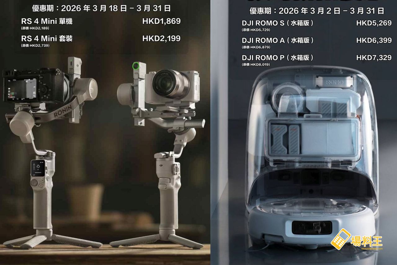 由即日起至 3 月 31 日,DJI 於 3 月繼續推出多款優惠,較值得注意的,是 DJI RS 4 MINI 首次有促銷價,另外剛開賣的 DJI ROMO 系列亦有推出優惠價,讓 Fans 以最優惠價格體驗 DJI 的各系列產品的新科技。