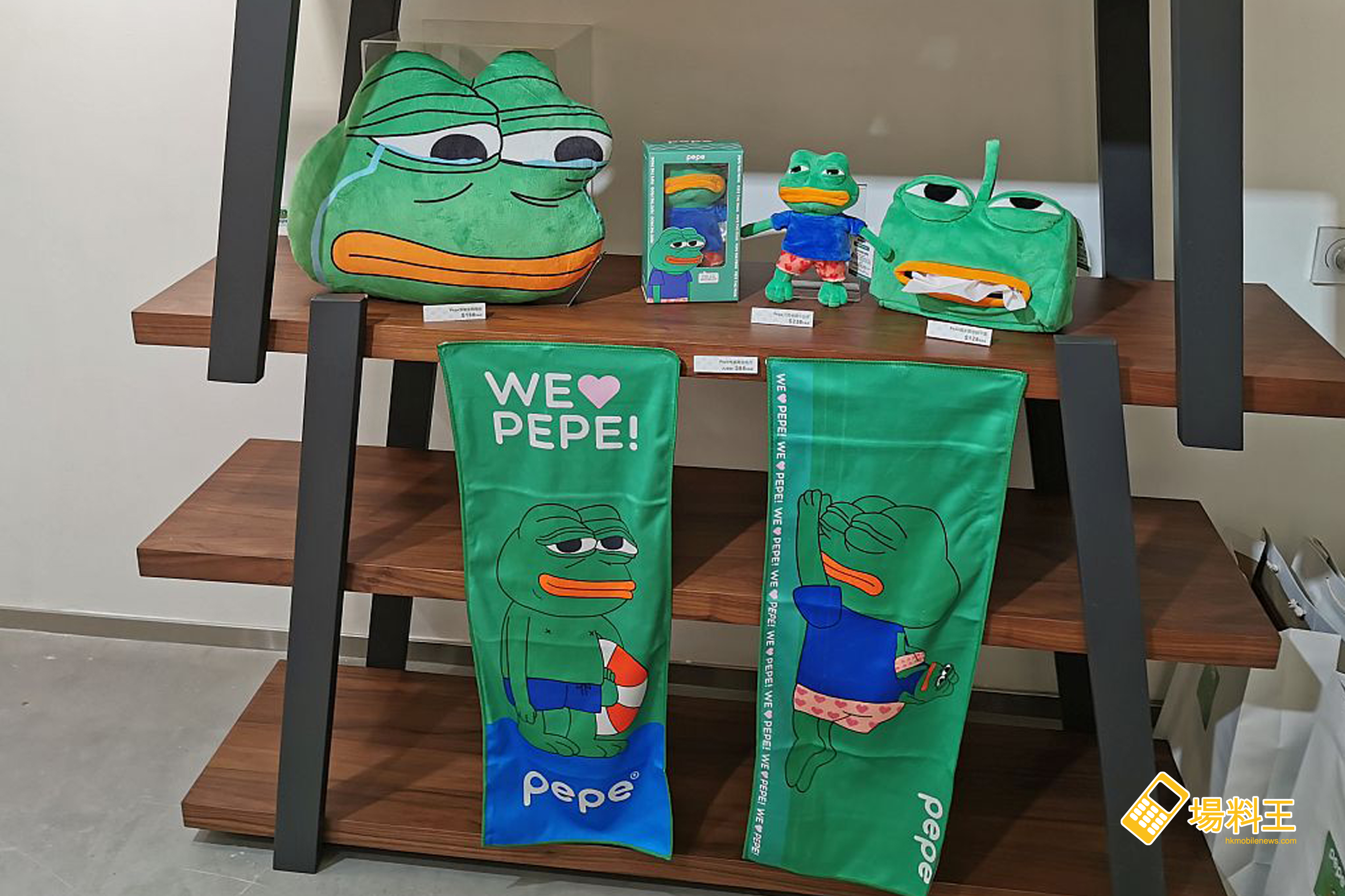 部分於上次 12 月限定店需訂購的 Pepe 產品,如 Pepe 哭著求抱攬枕 ($188)、8 吋呆萌小公仔 ($238)、搞笑造型紙巾盒 ($128)、性感限定毛巾 ($88) 等,亦有現貨發售。