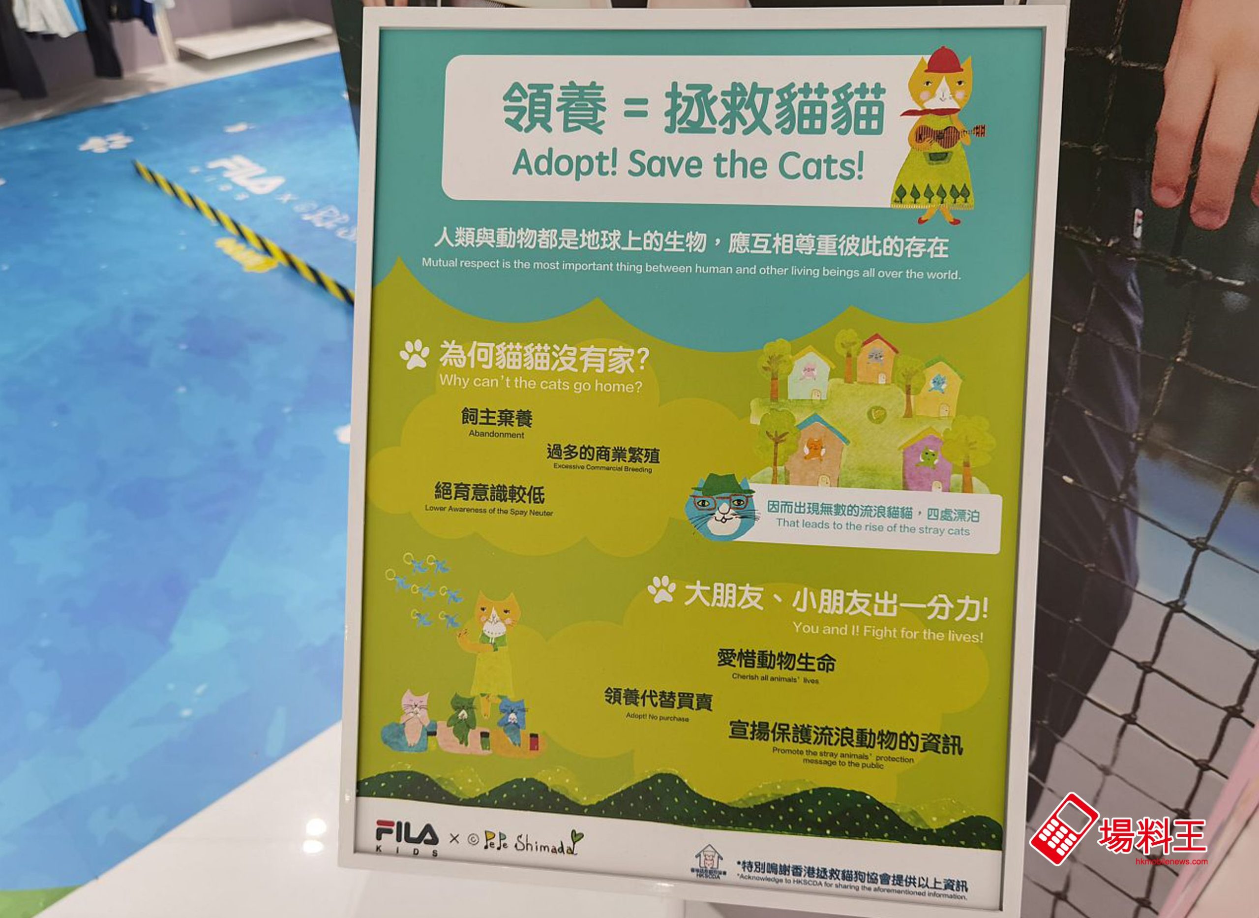 FILA x PePe Shimada 系列以可愛生鬼的貓咪主角,繽紛艷麗的色彩,為大家帶來愉快心情,而 FILA 希望藉此系列在這個非常時期將快樂正能量進一步傳遞,特別與香港拯救貓狗協會 (HK Saving Cat and Dog Association) 合作,帶出「領養,不購買動物」的關注。香港拯救貓狗協會自 2007 年以來致力拯救貓狗,提升大眾愛護動物的意識,教育大眾為貓狗絕育的重要性,致力營造一個和動物和諧共融的社區。