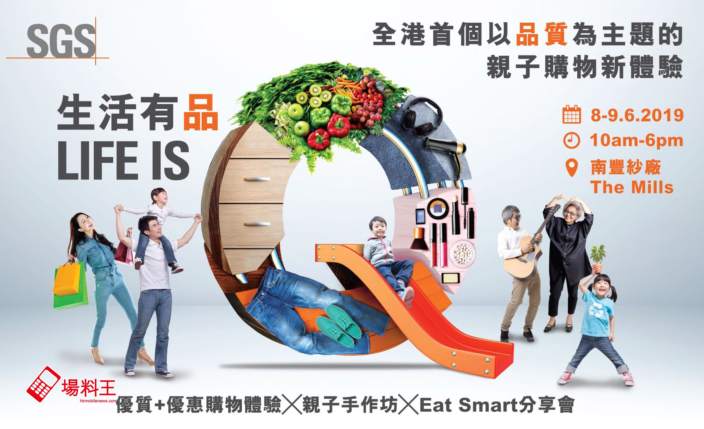 隨著社會對品質關注度不斷提高,特別是家長們想為家人為小朋友帶來有「品」好生活。提供檢測和認證服務的品牌 SGS,將 6 月 8-9 日假荃灣南豐紗廠 The Mills 舉辦「⽣活有品 LIFE IS Q」活動,提供「有品」優質購物體驗、「有品」親子手作坊及「Eat Smart 」分享會,以打造全港首個以「品質」為主題的親子購物新體驗!