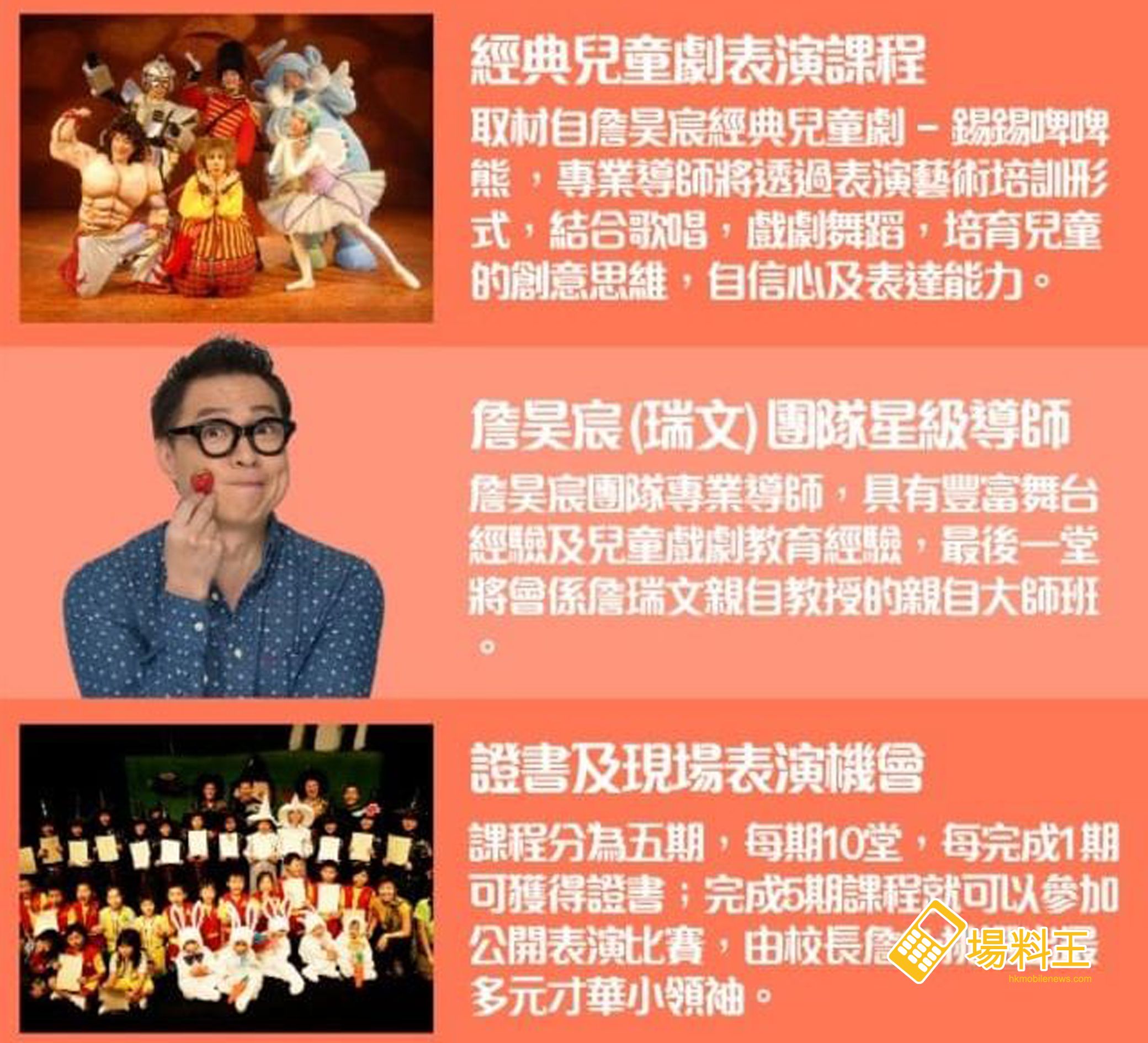 唯納文化的首個網上「兒童音樂劇課程」於本月剛剛推出,反應甚為熱烈。首個課程名為《錫錫啤啤熊音樂劇課程》,共分為 5 個階段,每階段包括 11 節課,由詹 Sir 培訓的星級導師教授,內容結合歌唱、戲劇及舞蹈等不同元素,培育兒童的創意思維,自信心及表達能力。兒童可透過課程學習表演詹 Sir 經典兒童音樂劇場小片段,並通過網上實時互動,練習演出技巧。完成每一階段均可獲頒發證書。完成 5 個階段課程,更可參加公開表演比賽,有機會被詹 Sir 選出成為多元才華小領袖。有關課程詳細資料及報名方法,請瀏覽星級兒童優才網上培訓
