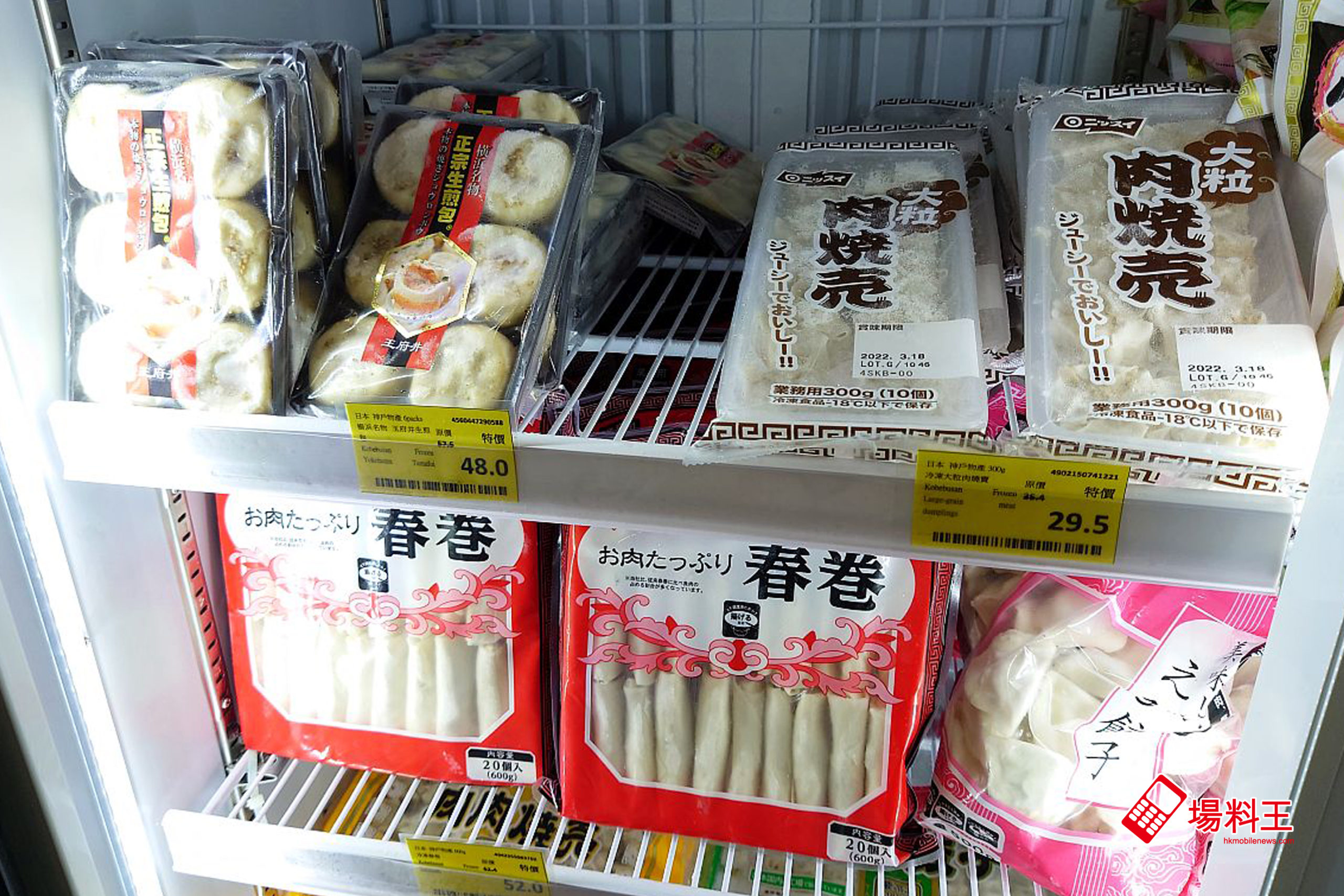 冷凍包點類有橫濱浜名物的「王禱府井生煎包」($48/下圖左上)、以雞肉製成「大粒肉燒賣」($29.5/下圖右上)、「豬肉春卷」($52/下圖下)。