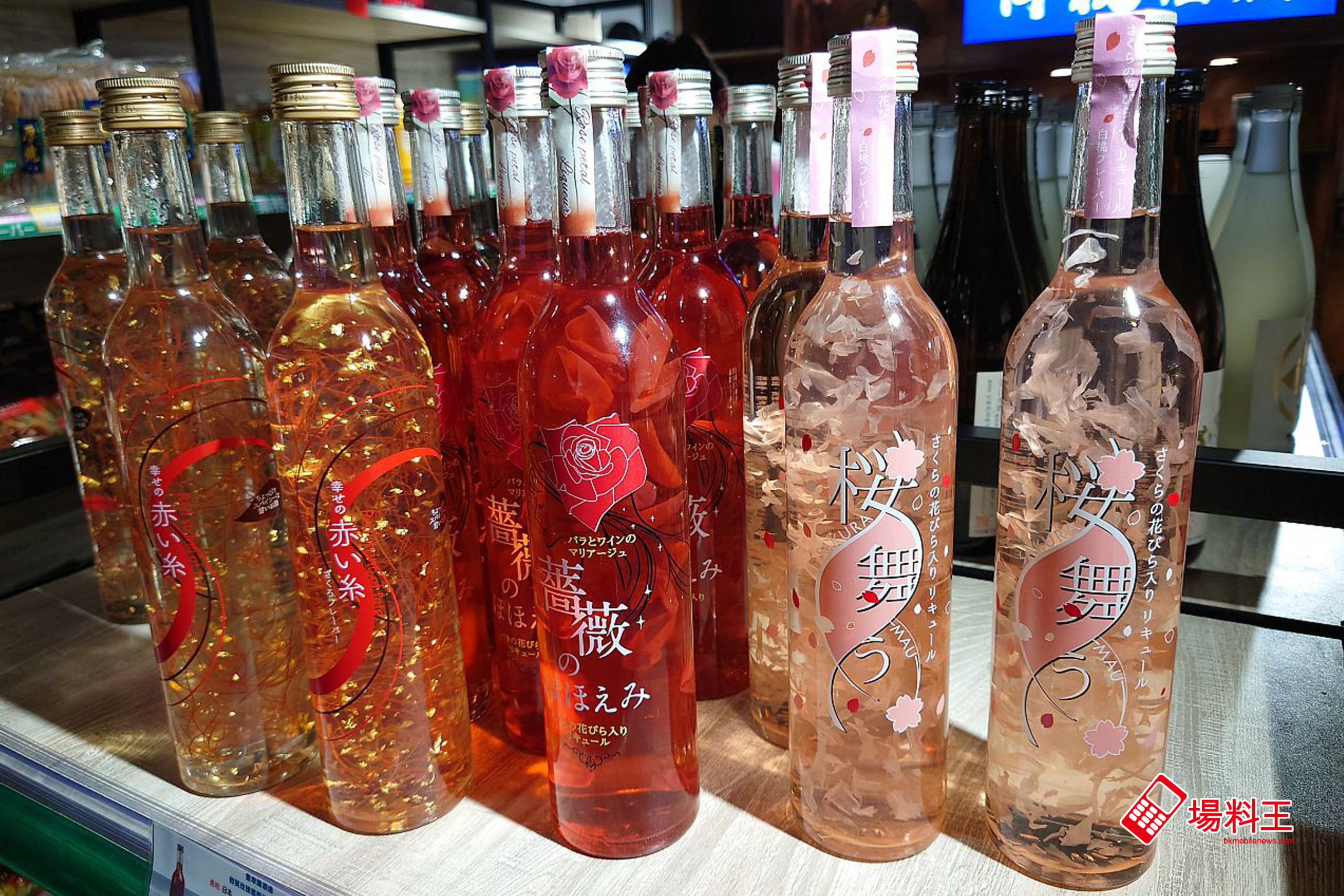 但論搶眼程度,相信可選擇日本知名食用花酒商「豐幸園」釀製的「幸福的紅線」白葡萄酒 ($180/下圖左)、「微笑玫瑰」葡萄酒 ($180/下圖中)、「櫻之舞」白桃味櫻花酒 ($180/下圖右),既有濃郁花香,又可見到花瓣在瓶中飛舞美態,確是送禮自奉、呃 like 之選。