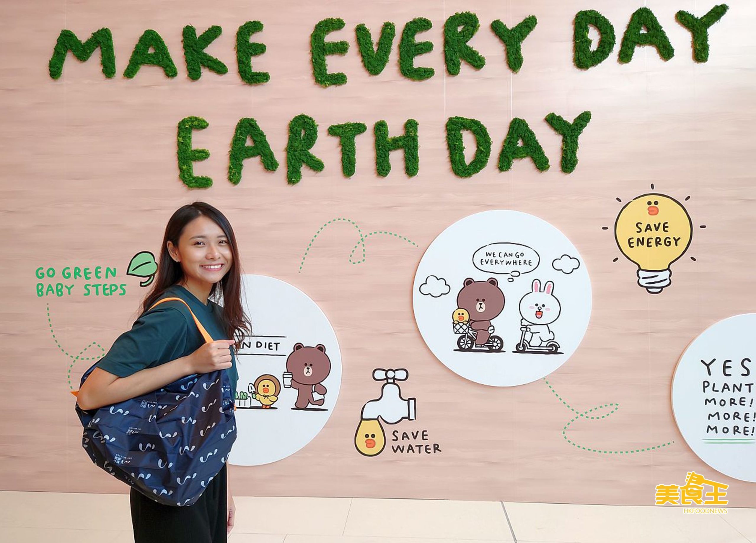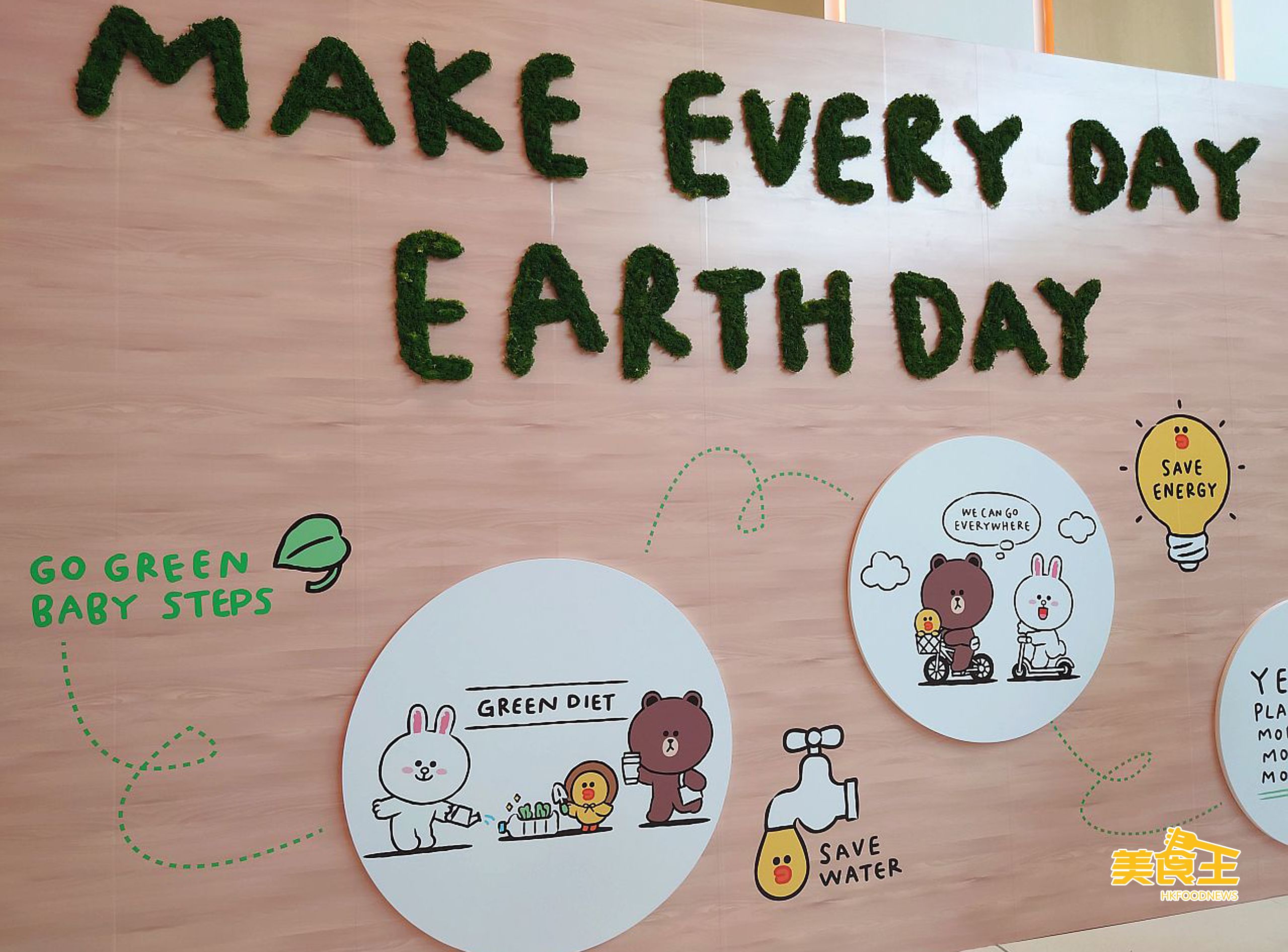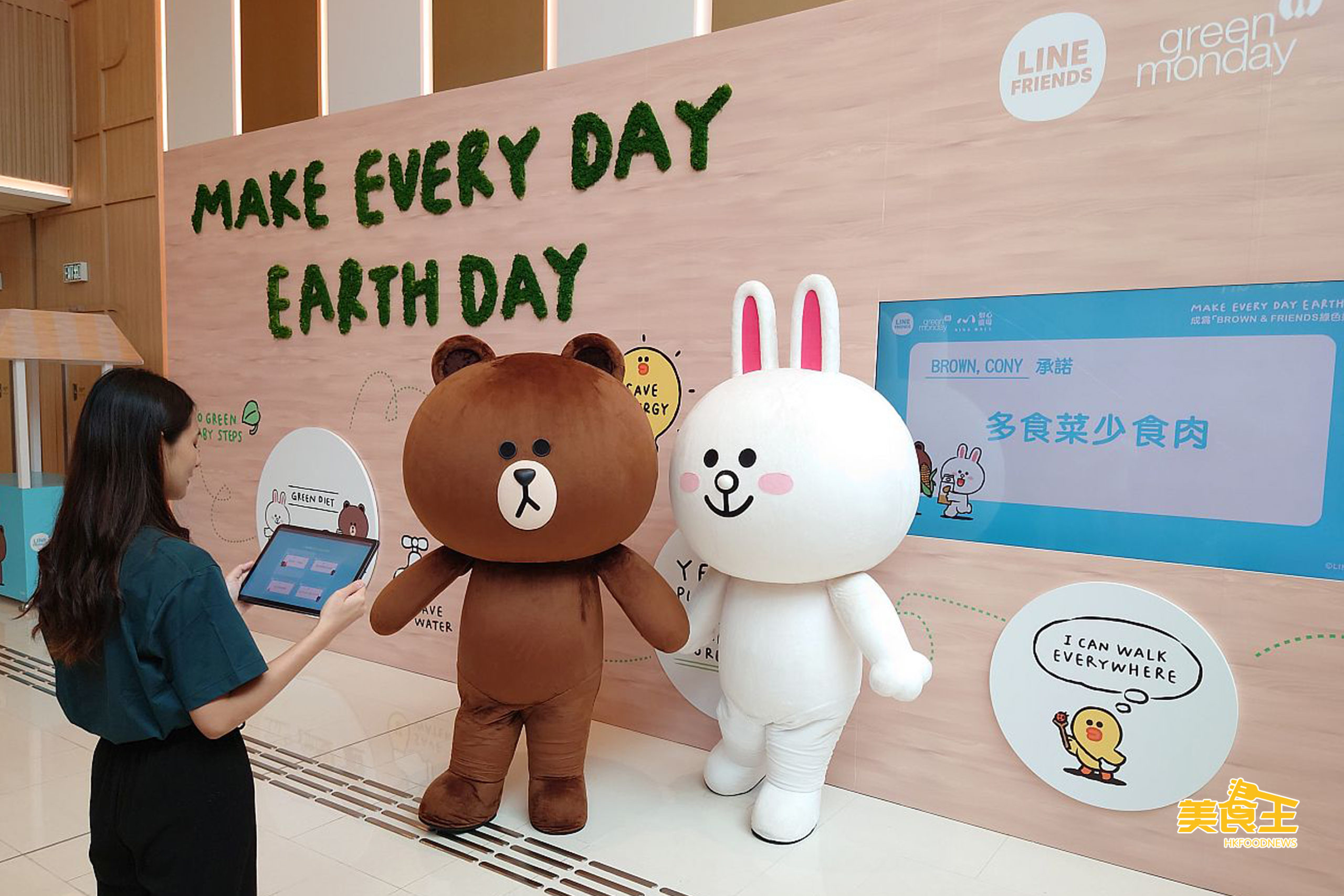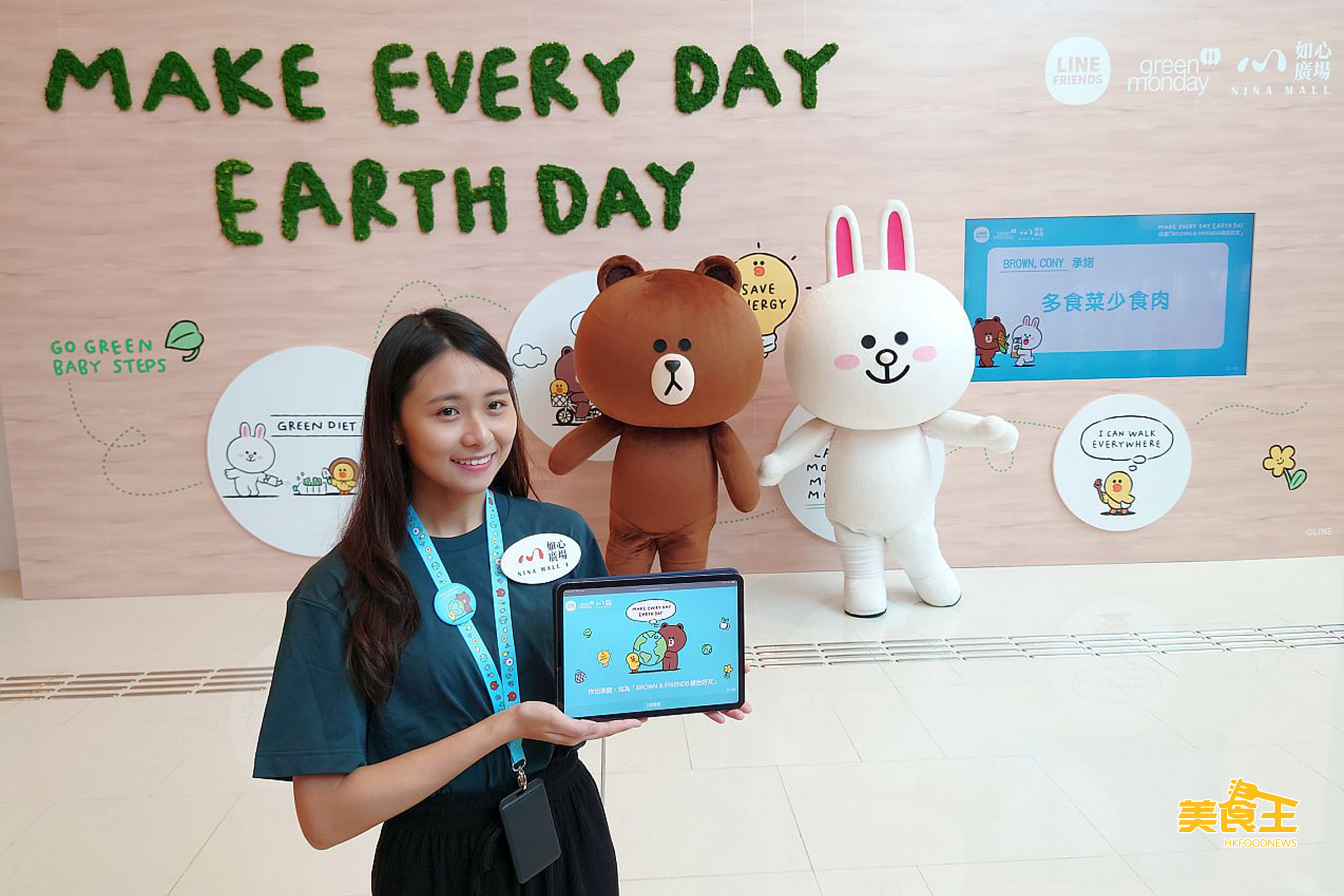 早前 Line Friends 夥拍 Green Monday 成為綠色夥伴,宣揚「Make Every Day Earth Day」的環保訊息,Brown、Cony 與 Sally 更化身綠色大使,一同推動可持續發展的綠色生活及保護地球。致力推動環保活動的如心廣場,適逢 6 月 5 日世界環境日,為配合今年「生態系統恢復」的主題,打造與別不同的「生態塗鴉承諾牆」,並擺放至 6 月 20 日,鼓勵大家向零碳生活出發!