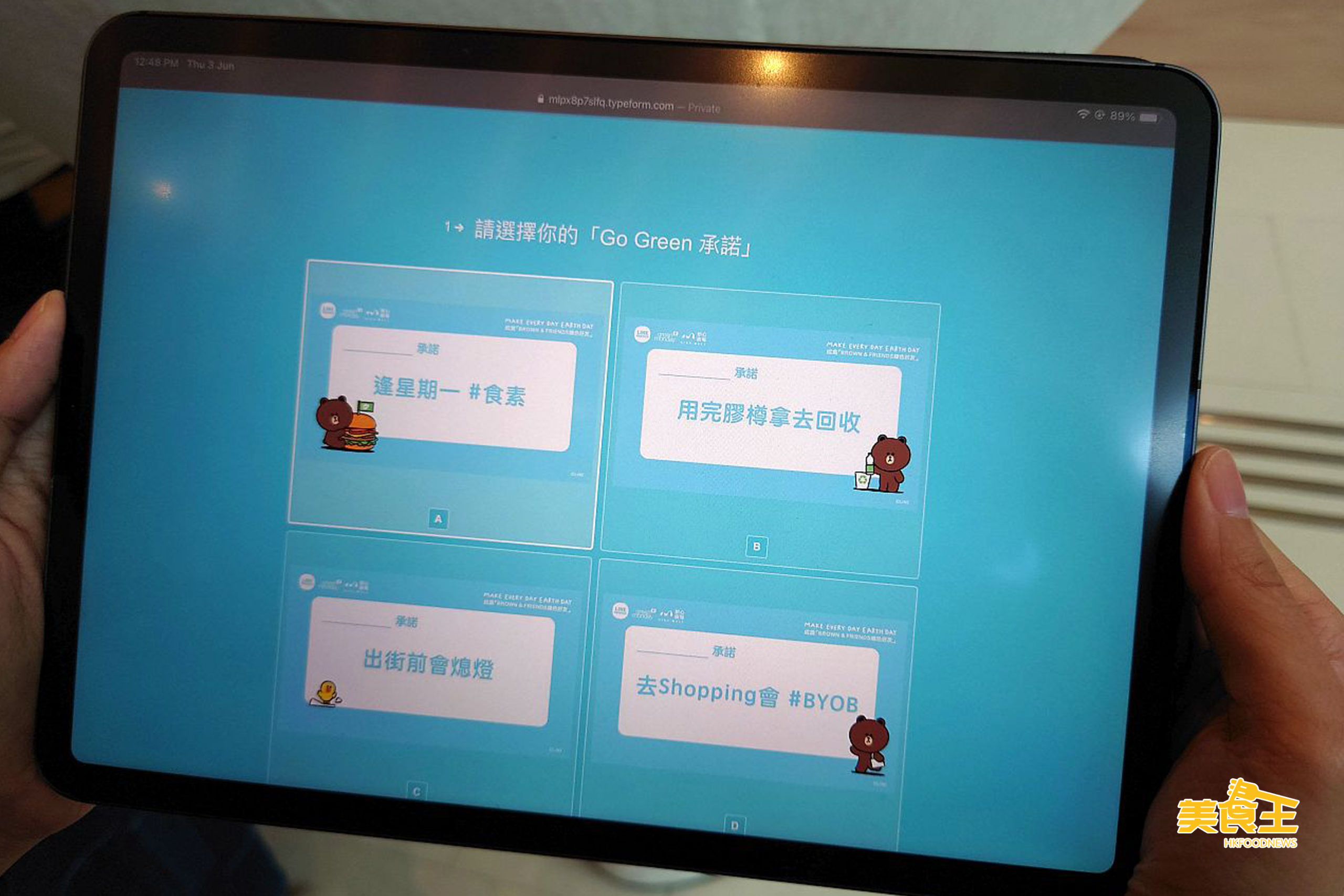 位於承諾牆的電子屏幕上會即時顯示出大家的「Go Green 承諾」,大家即時拍照、上載至社交媒體及標註 3 位好友,便可成為官方認證的「Brown & Friends 綠色好友」。
