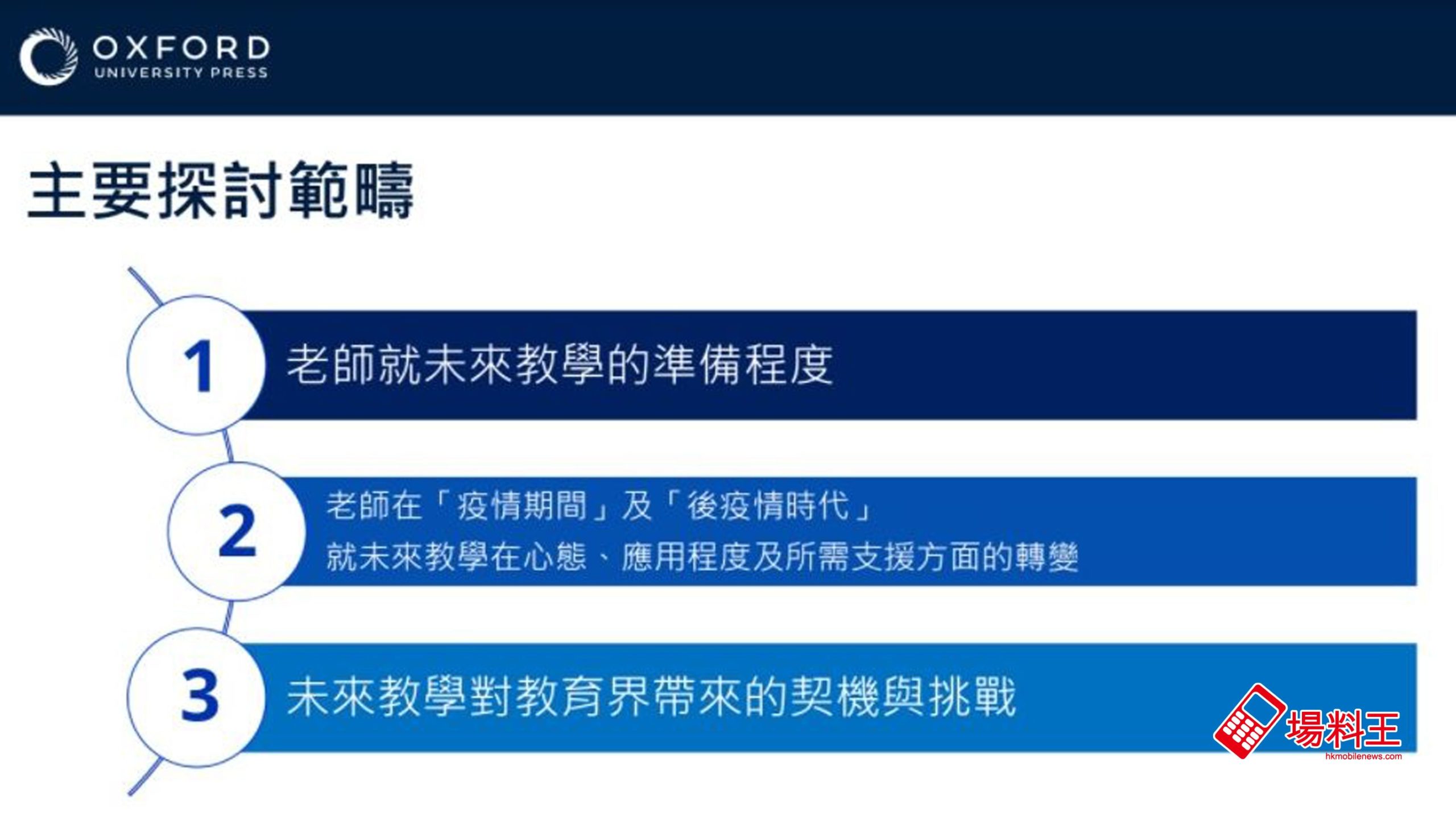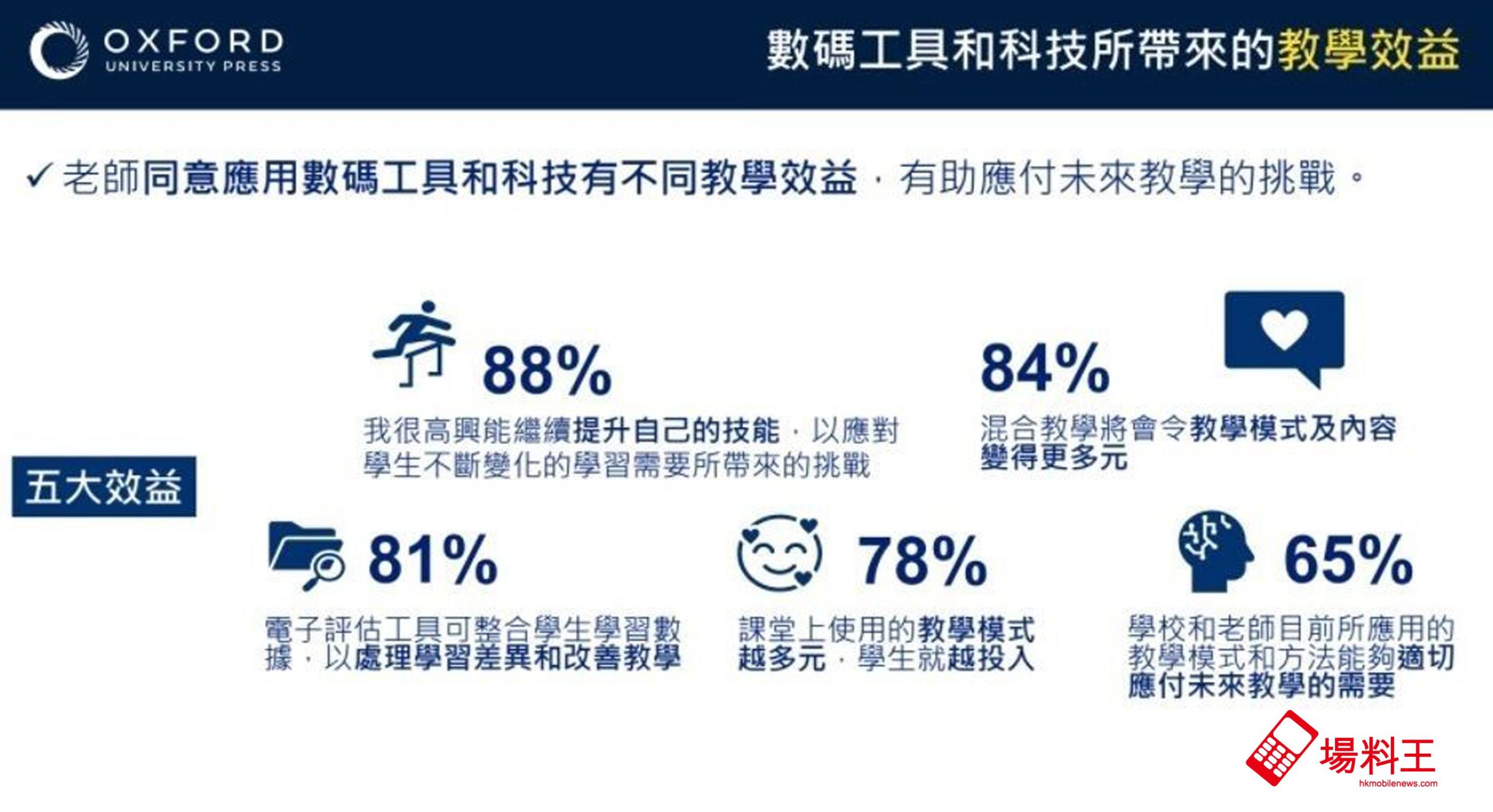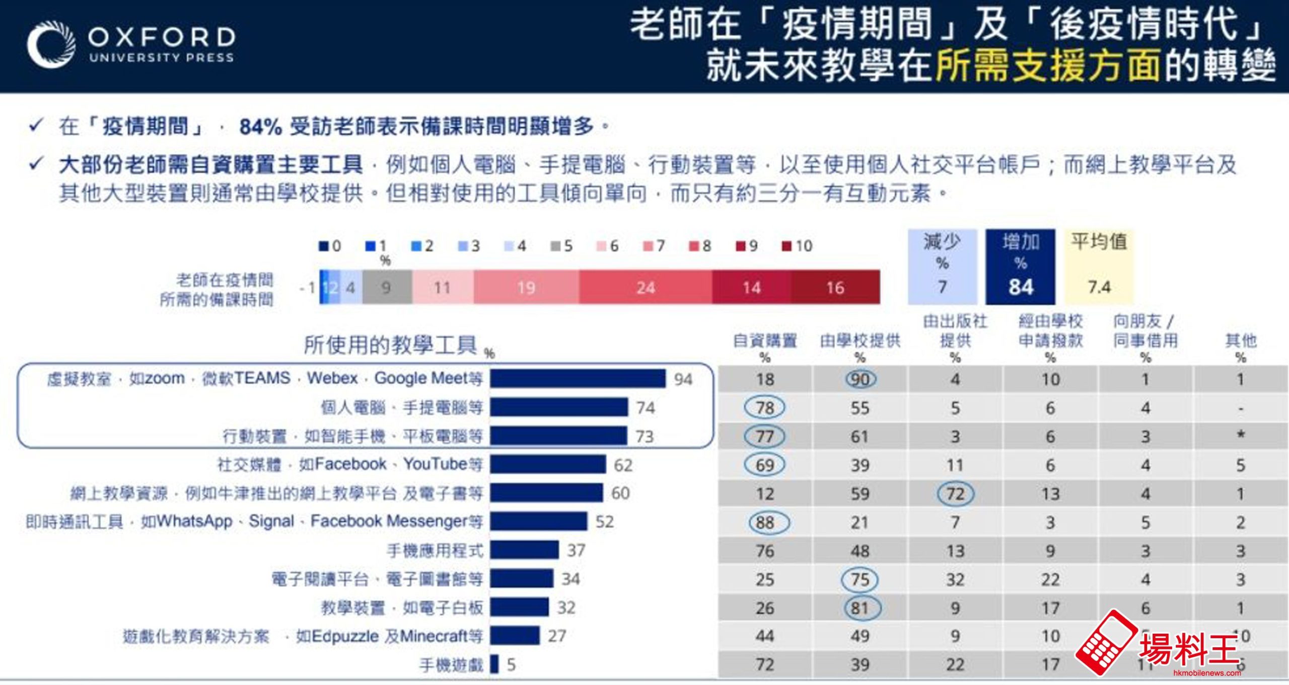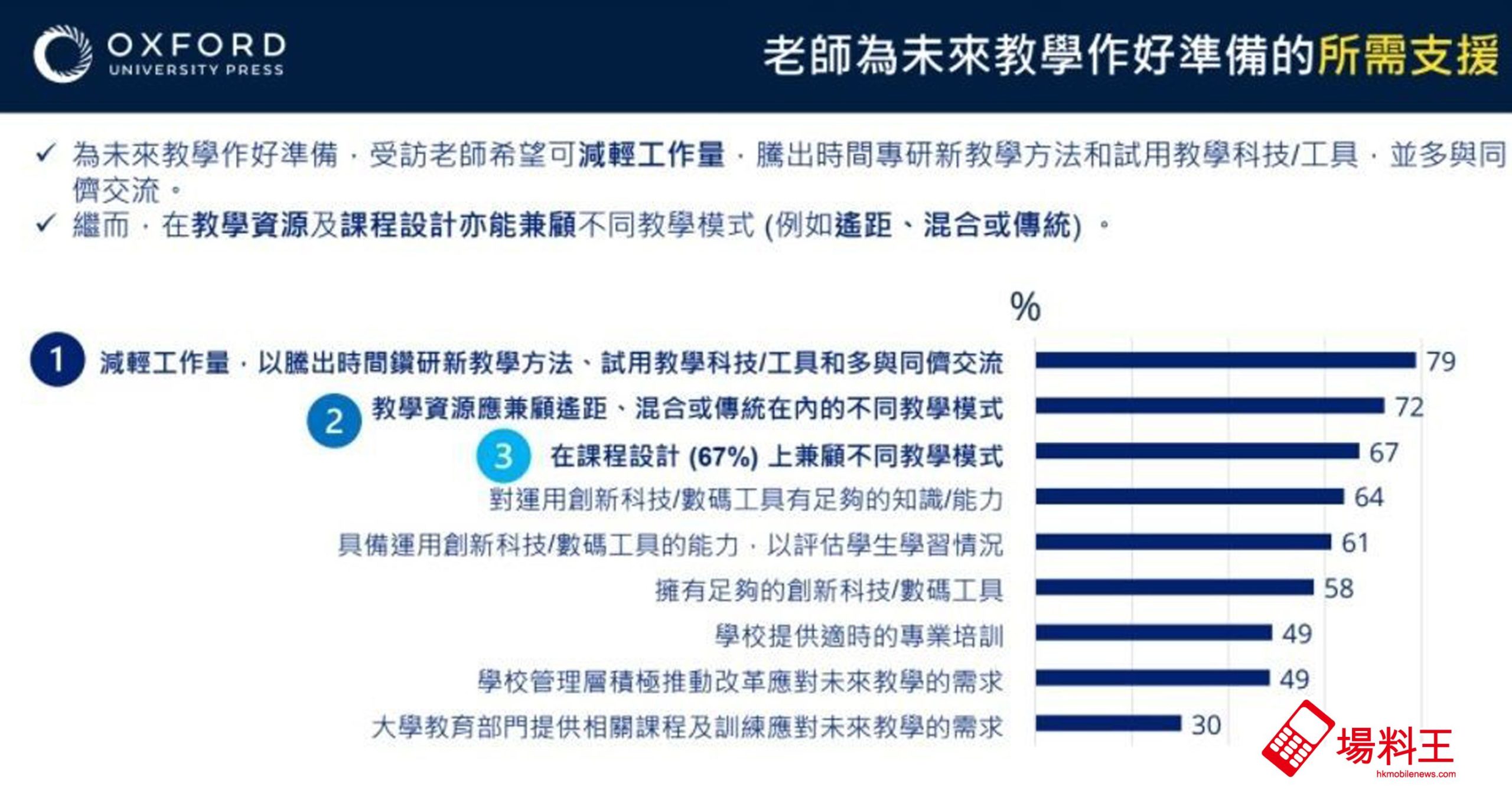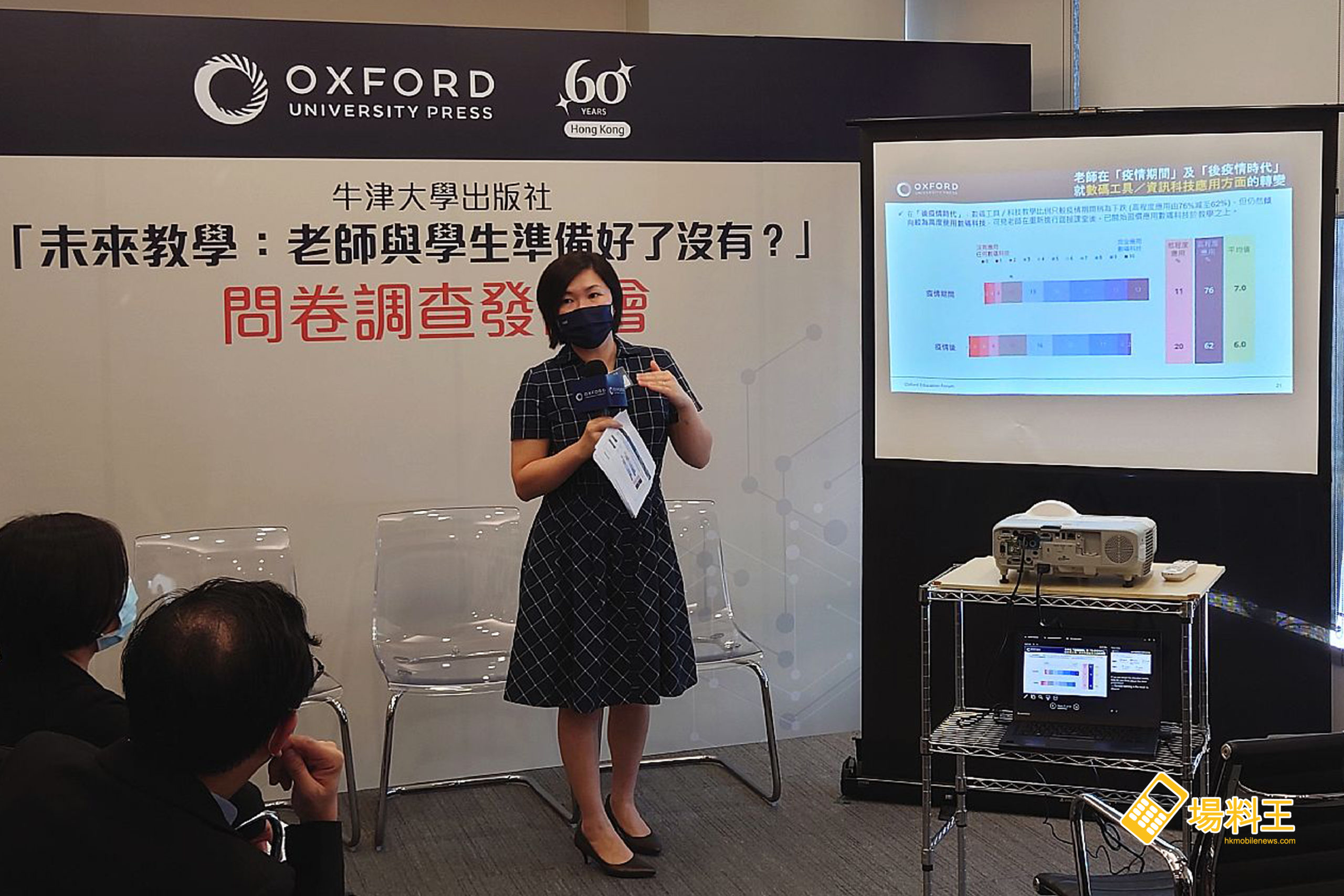 有關調查結果由牛津大學出版社(中國)企業推廣總監梁淑明女士說明,當中發現老師對數碼轉型所帶來之未來教學挑戰態度正面,並就教學支援範疇提出不少積極而實用的建議,讓教育界可攜手邁進,把握混合教學帶來的機遇。