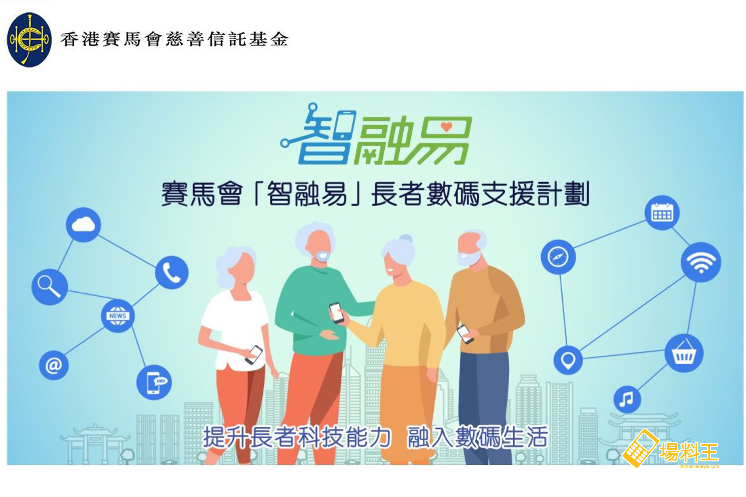 賽馬會「智融易」長者數碼支援計劃由香港賽馬會慈善信託基金撥捐 2,700 萬港元推行,中國移動香港參與計劃的本地流動通訊網絡商之一。是次計劃將有 20,000 基層長者受惠,其中中國移動香港會提供逾 5,000 部不同品牌的智能手機及 12 個月免費流動通訊基本服務,受助者參加本計劃費用全免。