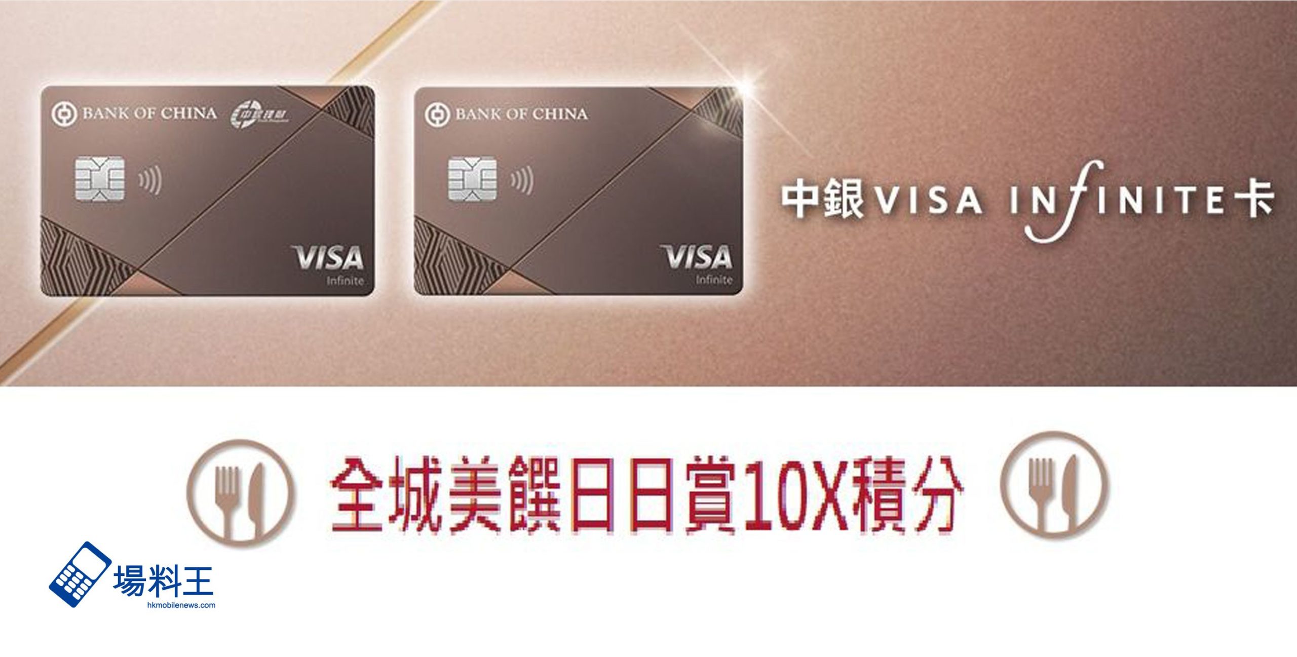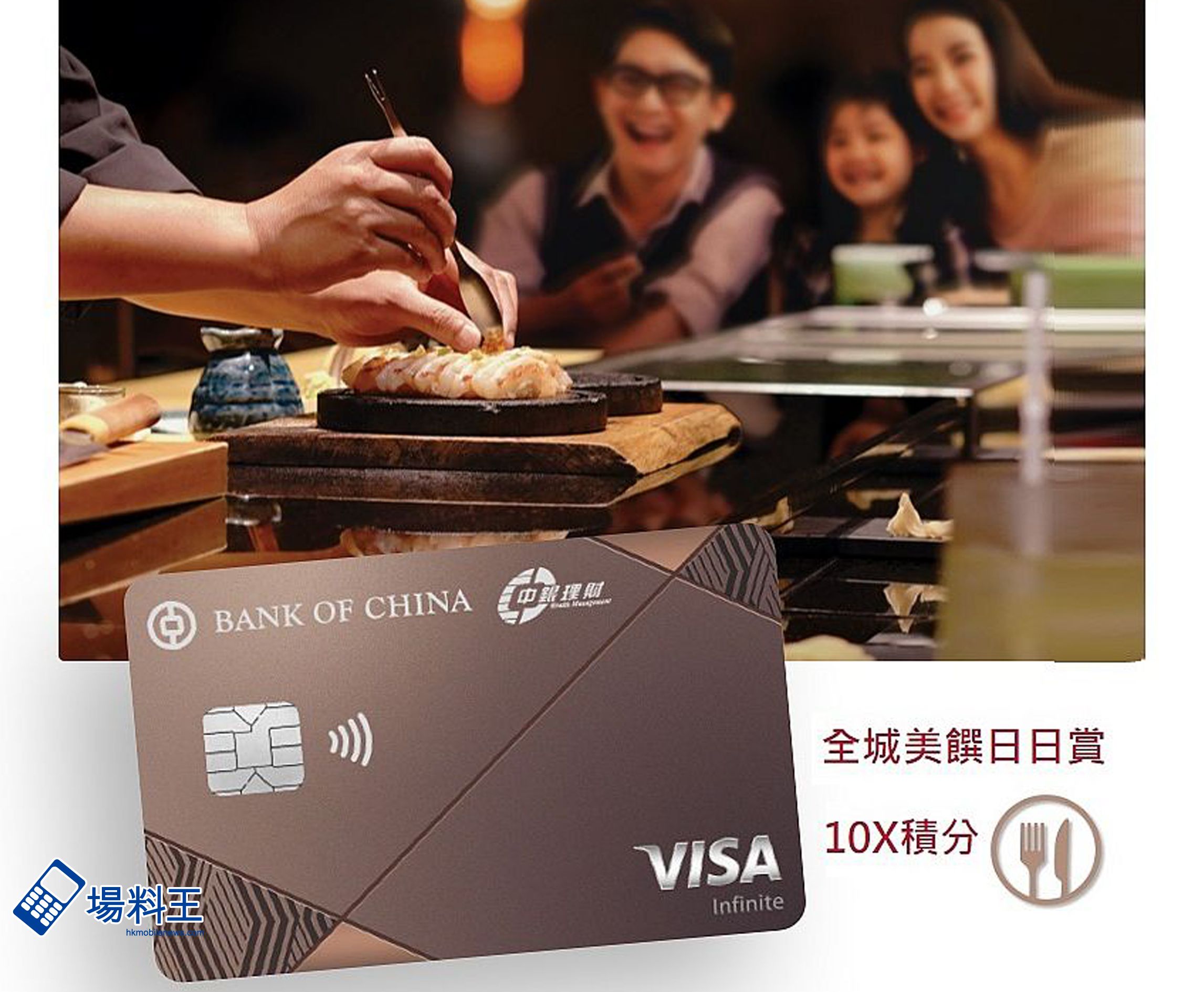 中國銀行為慶祝「中銀理財」Visa Infinite 卡發卡十周年,推出全新流線型卡面設計,時尚簡約;當中更為客戶帶來升級禮遇,餐飲簽賬全年可享 10 倍積分獎賞(相等於 4 %回贈),且不設最低簽賬要求,讓大家在消費時可賺取更多著數!