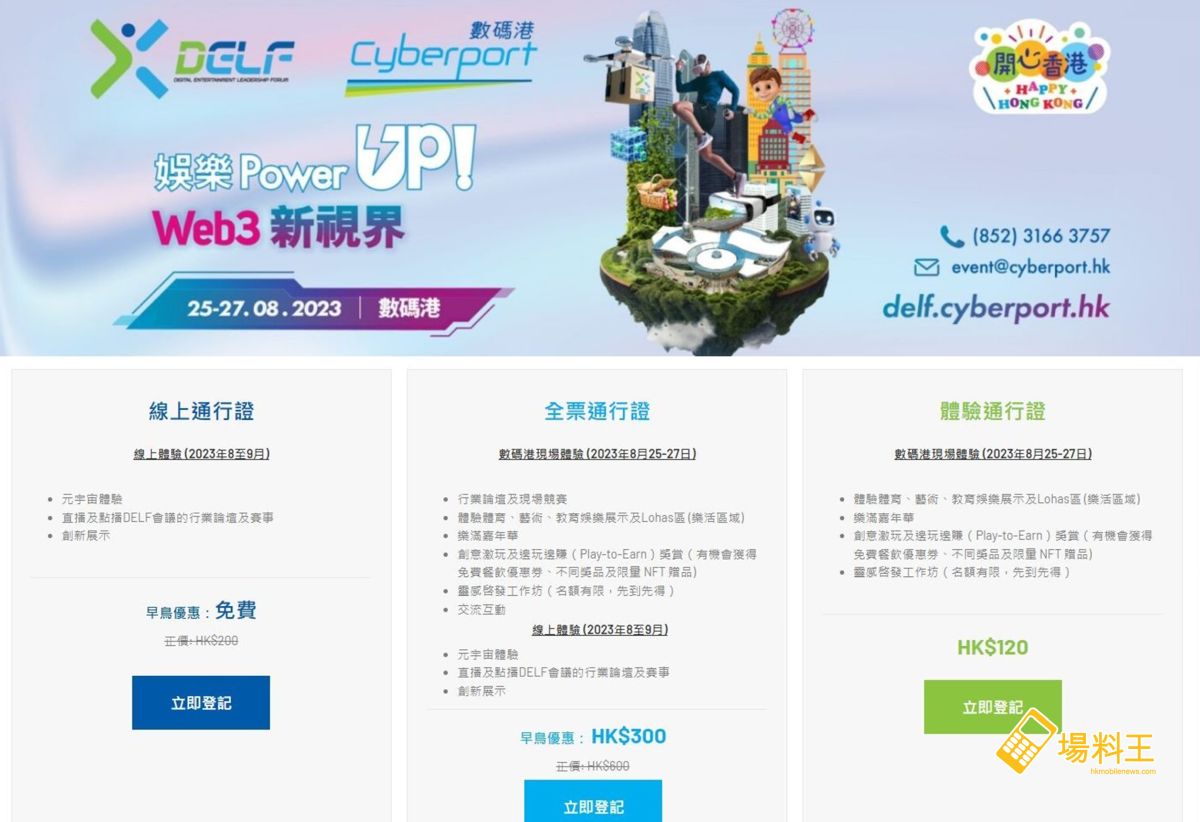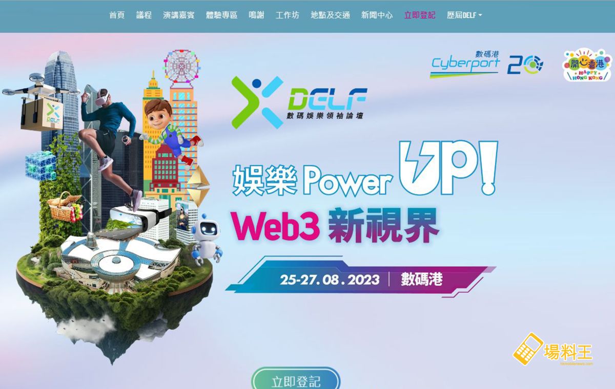 作為數碼港年度盛事的「2023 數碼娛樂領袖論壇」(Digital Entertainment Leadership Forum,簡稱 DELF)將於 8 月 25 至 27 日載譽歸來,今次活動以「娛樂 Power UP! Web3 新視界 」為主題,且更多了一層意義,就是兼具「開心香港」以及數碼港 20 周年慶祝活動之一,現場將有 AR 遊戲體驗,智能運動牆和遊戲平台、模擬賽車體驗、樂器學習應用程式工作坊等,以及設有精美小食攤檔,「有嘢食,有嘢玩」,一定可令大家玩得更盡興!