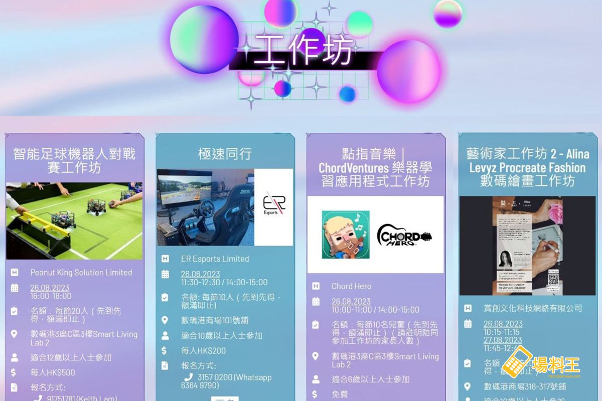 明天(8月26日)將有多個焦點活動如「​​體藝園嘉年華​​」,AIIT 原地三項鐵人香港紀錄挑戰公開賽和第六屆香港光雕節等。而最後一日的活動更有一系列精彩競賽,包括香港扶輪社樂齡電競及體驗日、ER Marvel Snappers Assemble、香港遊戲創作協會 GCE「香港遊戲比賽展覽 2023」以及智慧樂活健步足球體驗日等。各種​​工作坊及體驗區​​,​​亦會開放至星期日,讓公眾能夠更全面地體驗數碼娛樂的樂趣!​