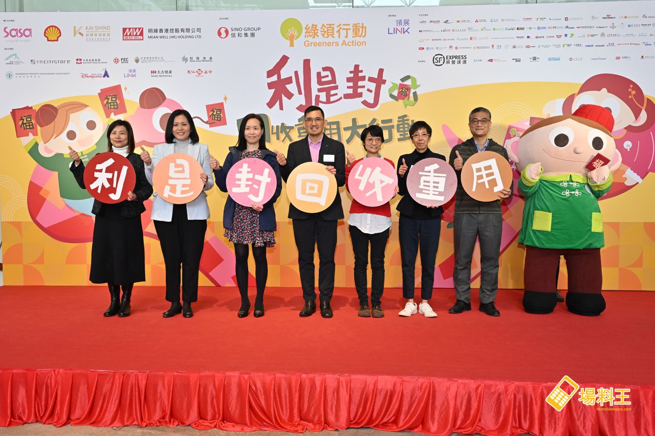 2 月 7 日,綠領行動剛在樂富廣場舉行「利是封重用回收大行動 2025」啟動禮。活動邀請到環境及生態局首席環境保護主任(減廢及社區回收)吳素真女士、莎莎化粧品有限公司高級副總裁、總法律顧問及公司秘書麥心韻女士、香港蜆殼有限公司零售業務部總經理香港及澳門黃幼梅女士、啟勝管理服務有限公司助理總經理(物業管理)許漢威先生,以及明緯香港控股有限公司公益專員何沛晴女士出席,加上在場近 50 個得獎單位來賓蒞臨支持,為回收利是封揭開序幕。