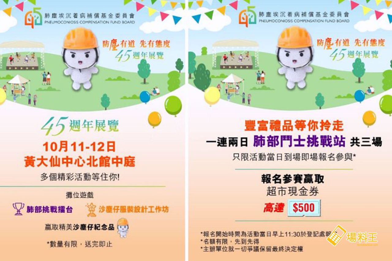 肺塵埃沉着病補償基金委員會:45 週年展覽 11-12/10 在黃大仙中心推廣職業健康