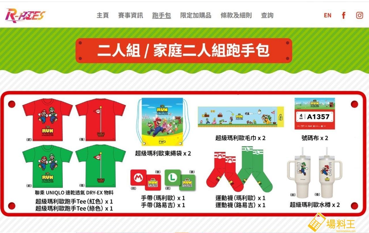 由 Running Aces Event Limited (R-aces) 主辦,並獲任天堂官方授權、FWD 富衛保險冠名贊助的「SUPER MARIO: RUN TO THE GOAL」將首次登陸香港,並於 2026 年 3 月 15 日舉行,會場更會設置多個主題打卡位及舉行超級瑪利歐角色們見面會。賽事尚餘少量名額,未報名的跑步健兒及粉絲們請立即行動。為迎接活動登場,大會於即日至 11 月 23 日更率先免費大派「SUPER MARIO: RUN TO THE GOAL」限定禮品套裝,網上登記名額 10,000 名,SUPER MARIO 粉絲萬勿錯過!