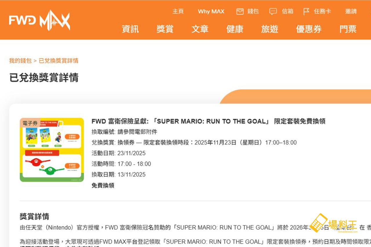 登記方法非常簡單,大家只需透過 FWD MAX 網上平台免費登記換領券,並預約日期及時間,即可到指定會場地點領取「SUPER MARIO: RUN TO THE GOAL」限定禮品套裝。同場更會隨機派發會場限定的瑪利歐或路易吉造型紙帽,無須登記即可領取,紙帽數量有限,送完即止。