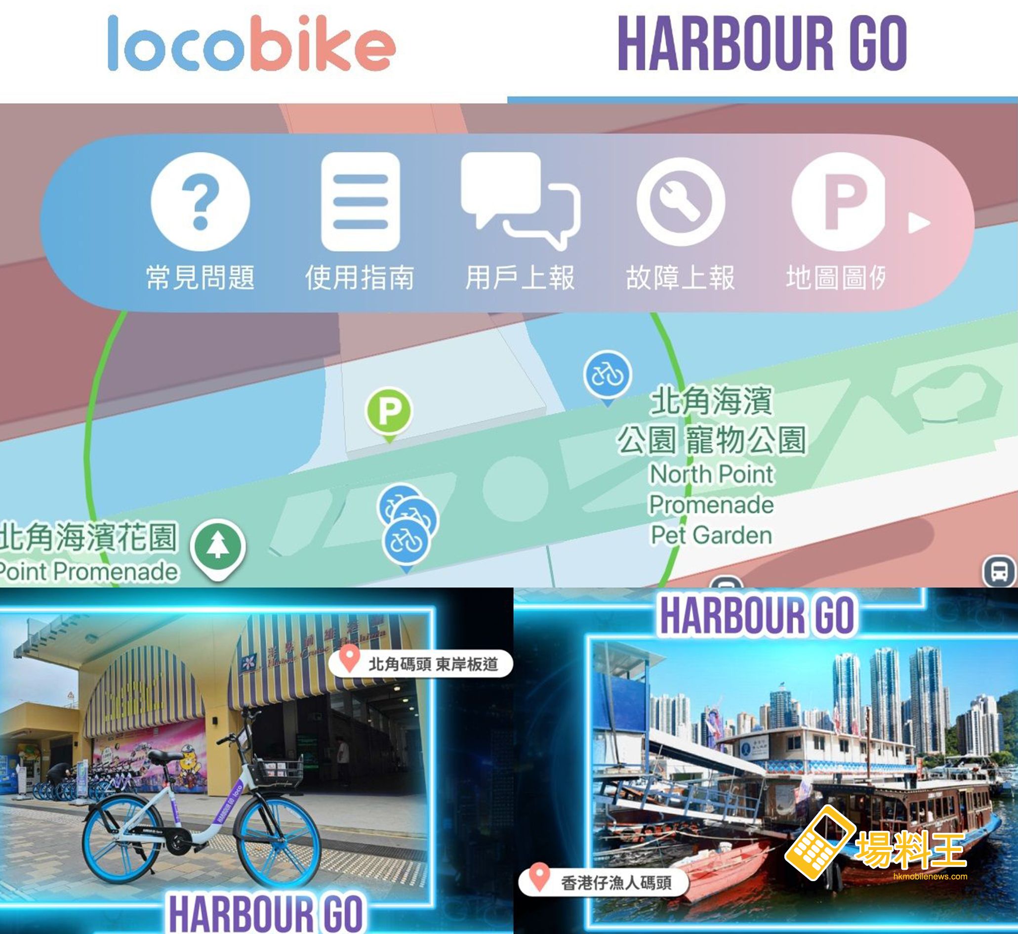 除了新界和九龍外,現於港島區也能看見 LocoBike 單車的身影,LocoBike 在「北角碼頭東岸板道」及「香港仔漁人碼頭」設立全新租借單車點!在 APP 揀選「Harbour Go」切換地圖就可以找到附近單車,單車車身印有 Harbour Go,完成騎行後在港島指定 Harbour Go 專用停泊處還車即可,於海旁騎單車漫遊,沿途盡覽維港及香港仔避風塘美景,令單車體驗昇華。