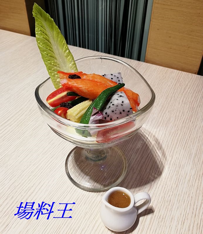 頭盤是以雪藏蟹為主要食材的「胡麻和風雪藏蟹」,配上蘋果、火龍果、玉米筍、秋葵、番茄等蔬果,鮮甜味美,混合酸甜的醬汁令人更是開胃。