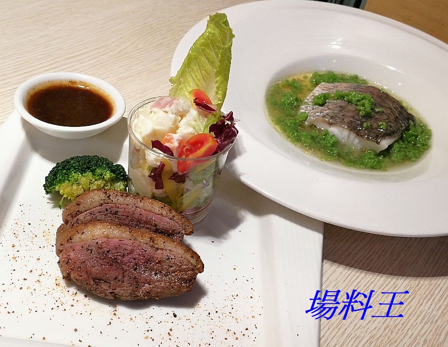 提到主角,要數伴以黑椒同吃、令其變得更香口惹味的「黑胡椒佐櫻桃鴨胸」,以及賣相精緻的「芙蓉翡翠佐鱸魚菲力」,當中的菠菜蓉更可突出魚肉的鮮甜味。