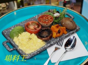 賣相頗豐富的「健康田園早餐」($105),有炒蛋、牛油果、蕃茄、烤大菇、焗豆、焗南瓜、沙律菜、黑麥麵包,食材款式多,就算是素食者亦有其他選擇,算是不錯。