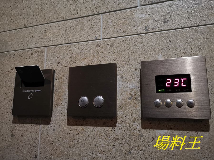 甫入房間見到一列以不鏽鋼拉絲的操控版面,作為取電、不便打擾/打掃房間、溫度調控的操作,設計齊整得體。