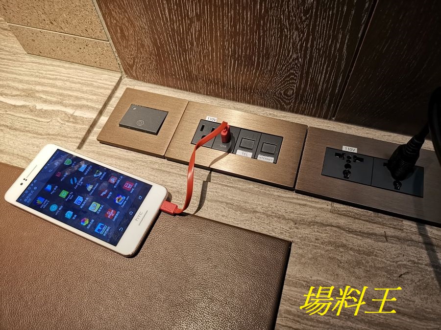 房間內的供電位置不少,特別是在書桌上的電源列,除了設有 USB 埠可供手機直接充電外,兩個電源插槽特以「萬用頭」設計,所以就算是香港的旅客來到,即使沒帶轉插也可使用,十分方便。