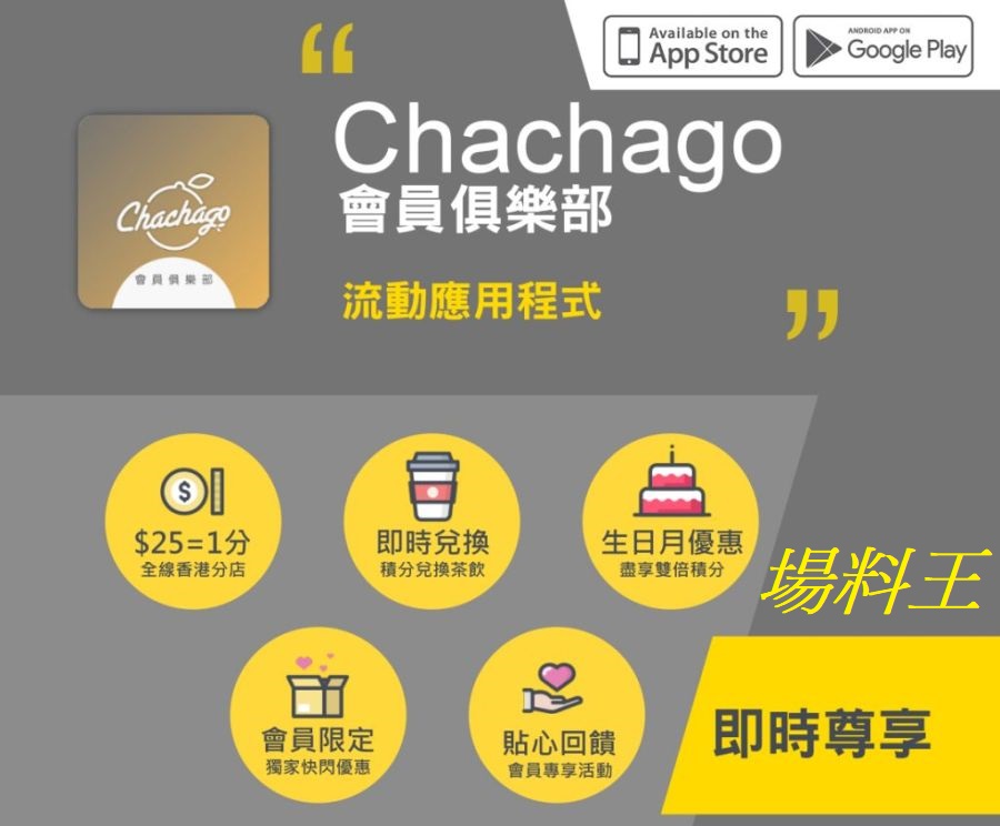 「Chachago 茶茶 GO」香港官方網站 (www.chachago.hk) 將於 2019 年 1 月推出「茶茶 GO 網上購」服務,供大家訂購心愛的茶飲及網上支付後,再到店取貨,省卻排隊時間。此外,顧客亦可下載「Chachago會員俱樂部」流動應用程式,累積積分兌換獎勵。