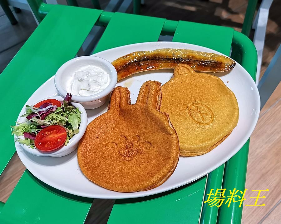 在一般主食外,餐廳設有 6 款單點式食品的早餐供選擇,售價為 $25 至 88;另有如印上 Brown 及 Cony 圖案的熱香餅配沙律及飲品 ($111/下圖) 的 2 款早晨套餐可揀選,相信大人小朋友也會喜愛。另外大家亦可選擇鬆軟菠蘿油、芝士多士及雞肉粥等。