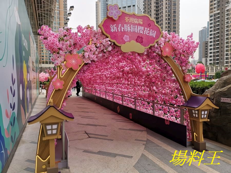 經過長達 13 米及滿佈櫻花的「粉櫻步道」,大家便正式步入「新春豚圓櫻花園」的範圍,與親朋摰愛攜手走過漫天花雨,定能感到幸福滿載!