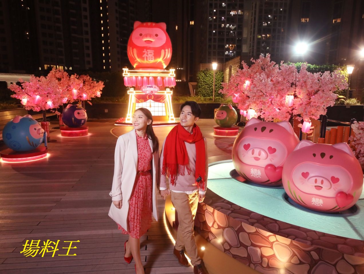為求大家戀愛方面「順風順水」,主守戀愛運程的粉紅達摩吉祥豬在「幸福甜蜜池」守候大家,祝福新一年甜蜜情侶繼續日日心心眼!