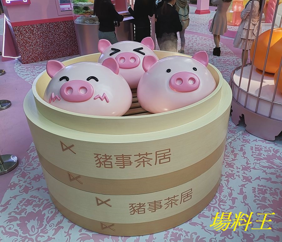 一踏入《豬事茶居》就有粉紅色的「豬頭大包」等住迎接大家!豬年同肥嘟嘟的「豬頭大包」來一張新年合照,今年定必「發過豬頭」!