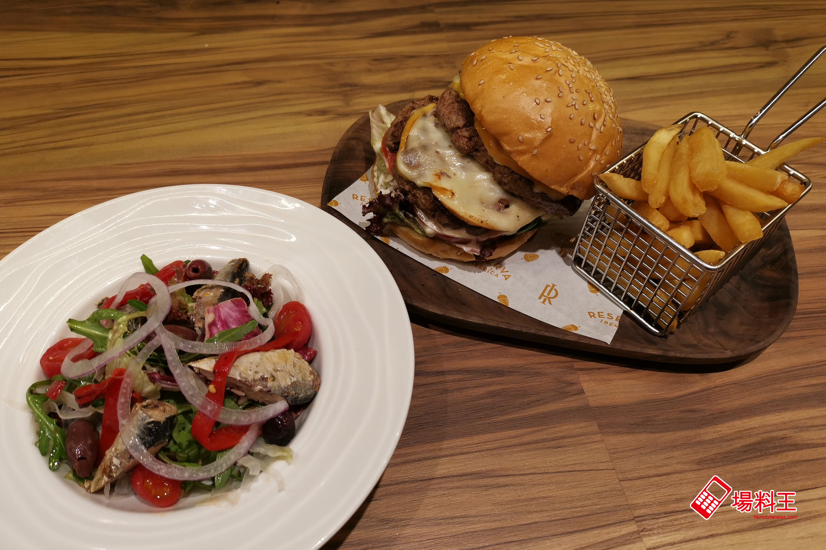 雙層芝士漢堡配大蒜薯條及西班牙沙甸魚沙律特色套餐,原價 $416,現優惠價 $328。(查詢:Reserva Ibérica)