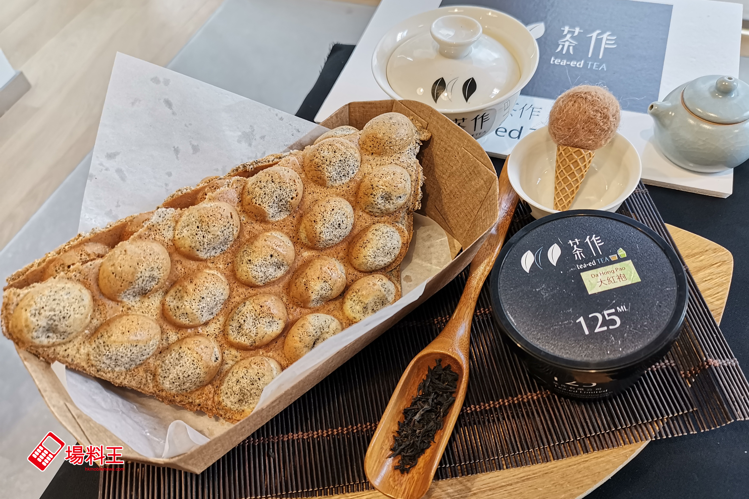 第二次參與雞蛋仔藝術節的茶作,將創意與茶結合,除了推出大紅袍朱古力茶味雞蛋仔 ($40,下圖)、鳳凰單樅茶味雞蛋仔 ($40) 外,更如往年般加入雪糕,推出黑炭椰子雞蛋仔+黑炭椰子手工雪糕 ($60)、玄米茉莉花雞蛋仔+蜂蜜茉莉花手工雪糕 ($60)、香港風味雞蛋仔(大白兔糖)+大白兔糖手工雪糕 ($60)。