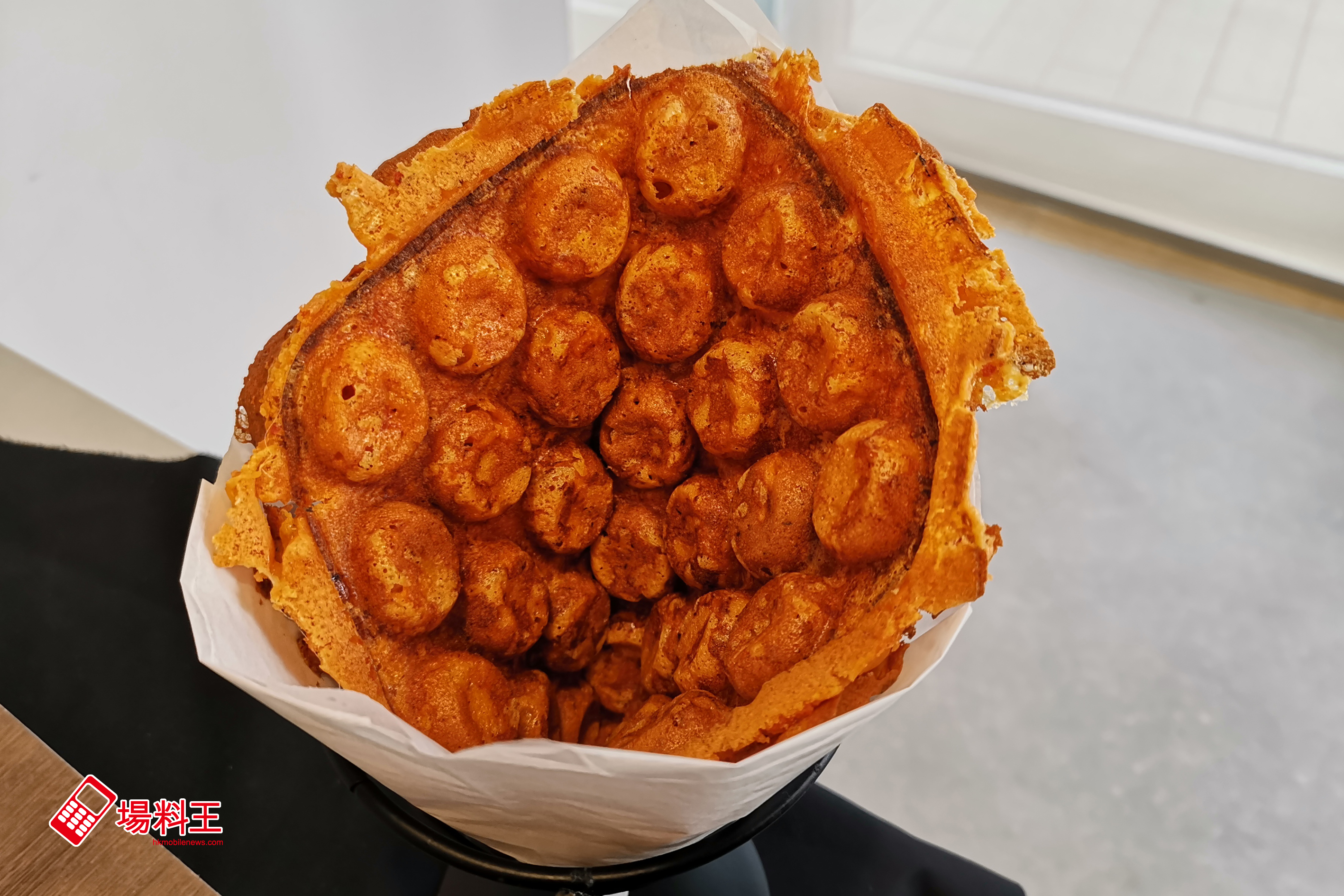 同是第二年參加的 ICE PUFF,推出 Pizza 雞蛋仔(蕃茄、煙肉、芝士) ($40,下圖)、70% 黑朱古力藍莓雞蛋仔 ($40)、流心蜂蜜伯爵茶雞蛋仔 ($40)、阿華田脆脆麻糬雞蛋仔 ($40)。