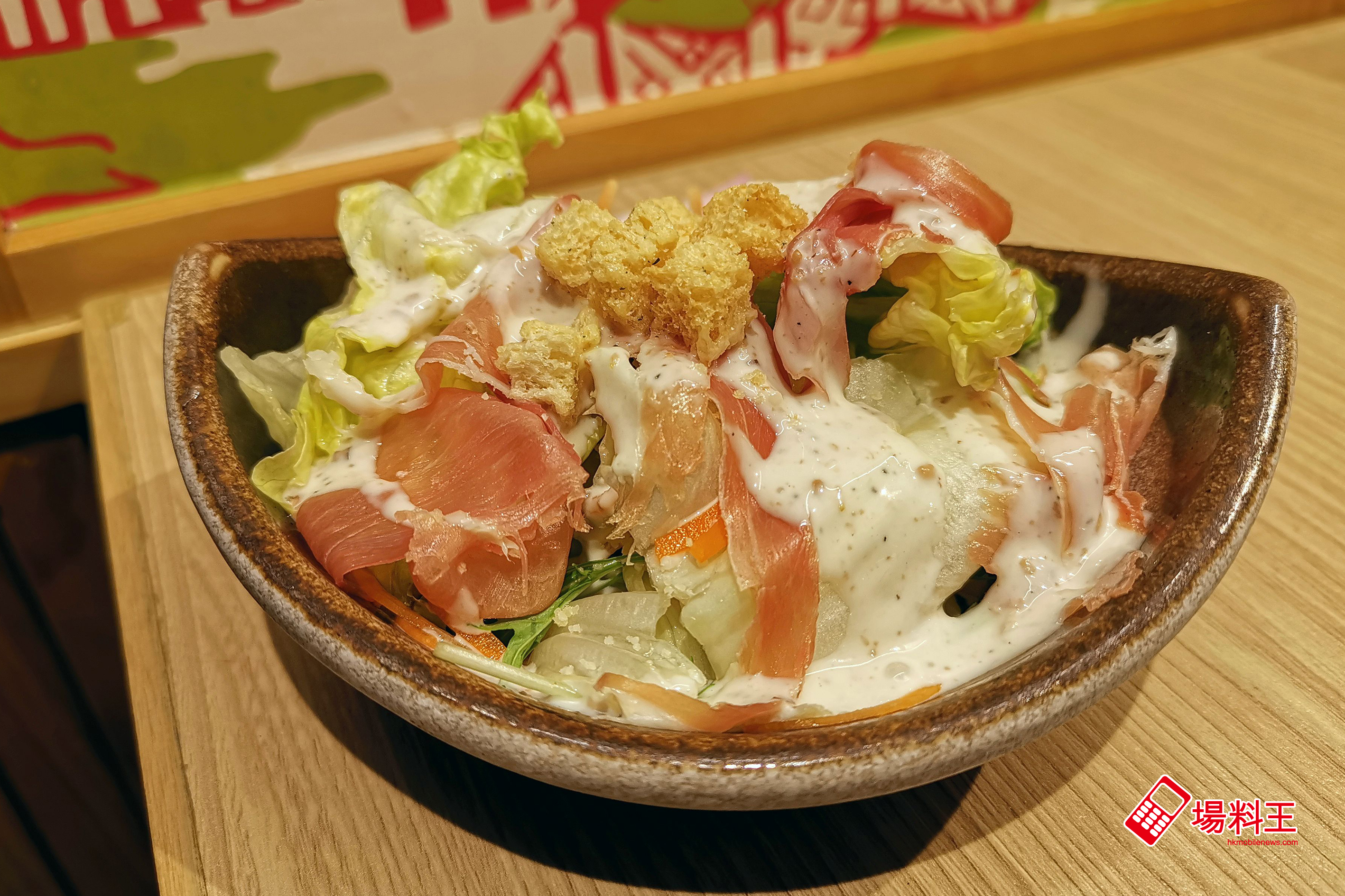 在火鍋湯底未有滾熱的時候,大家可先吃「櫻花鍋」定食提供的巴馬火腿凱撒沙律。