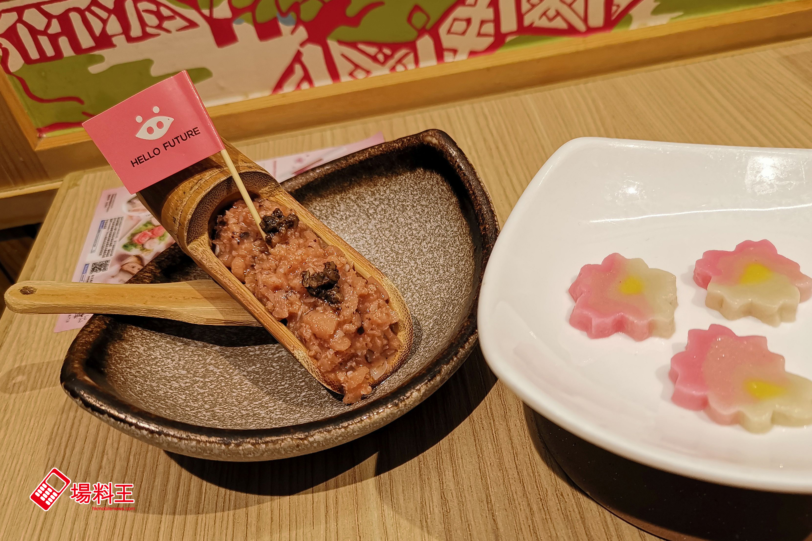 在 3 款肉片外,原來「櫻花鍋」定食更特意搜羅零膽固醇、低脂和低卡純植物肉的黑松露免治膳良豬,其肉味較濃厚,但始終不及混入的黑松露,未放入口已聞到濃烈的黑松露香氣,份外惹味。